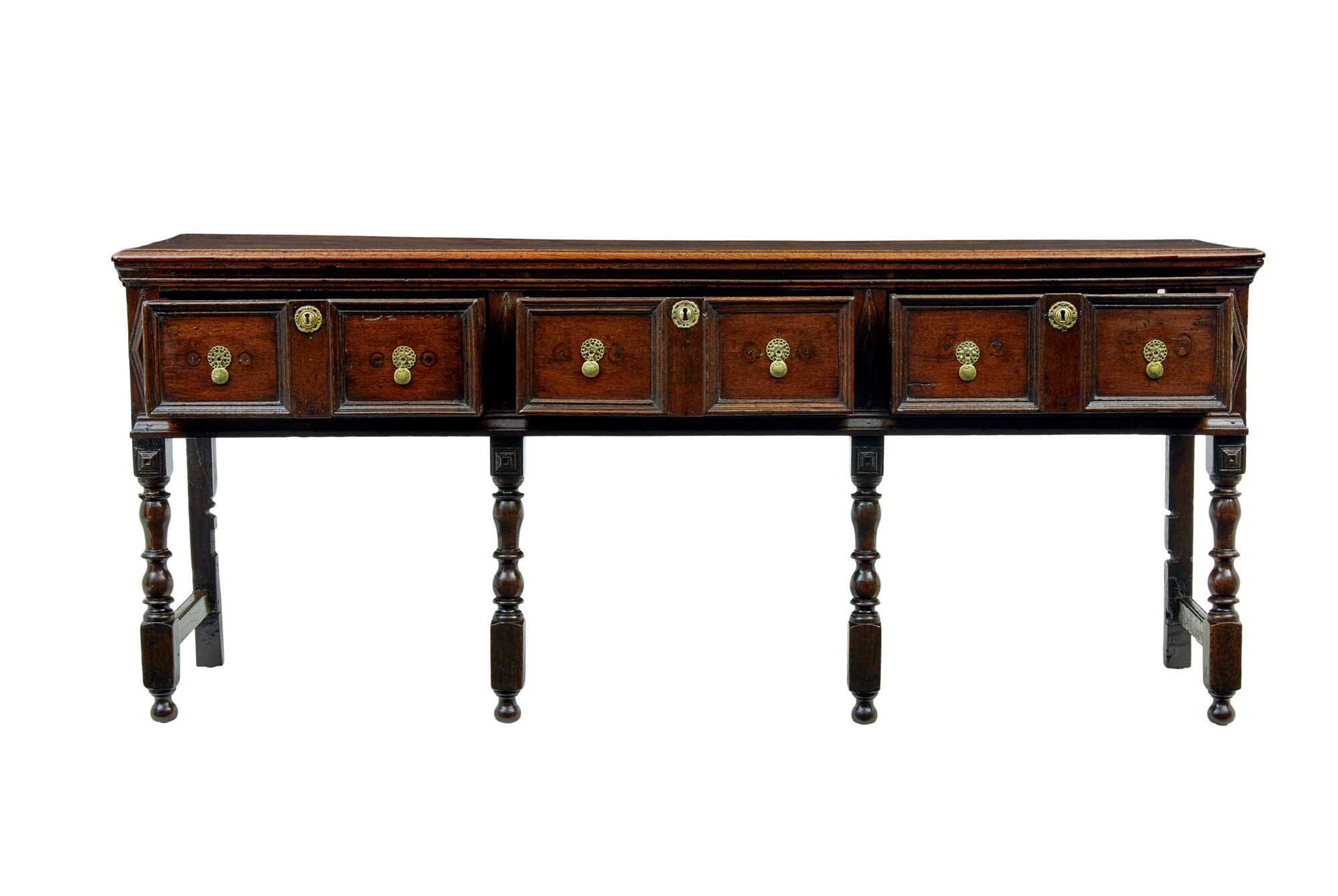 18TH CENTURY GEORGIAN OAK DRESSER BASE CIRCA 1750.