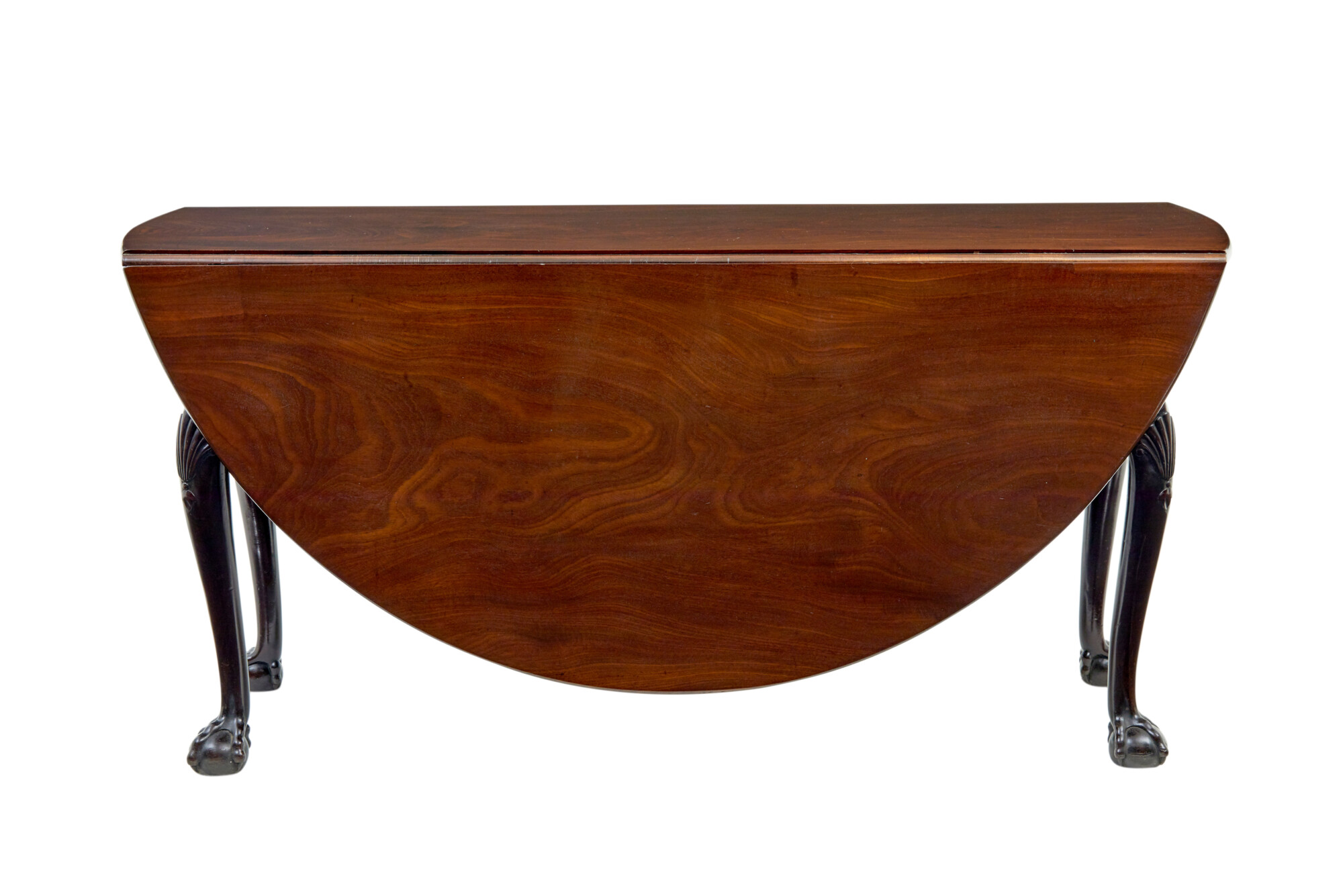 18TH CENTURY IRISH DROP LEAF MAHOGANY DINING TABLE CIRCA 1770.