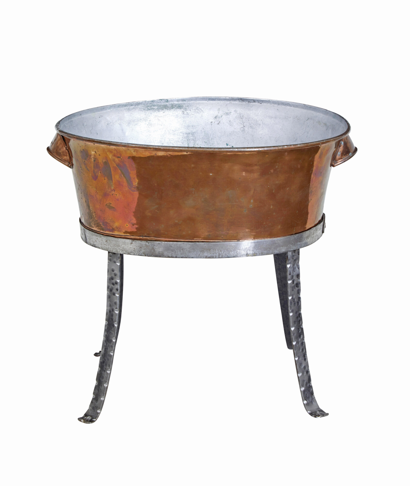 19TH CENTURY ARTS AND CRAFTS COPPER BOWL ON STAND CIRCA 1890.