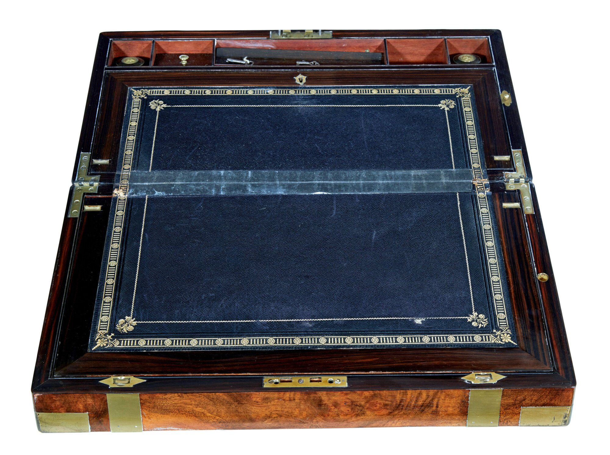 19TH CENTURY BRASS BOUND MAHOGANY WRITING SLOPE