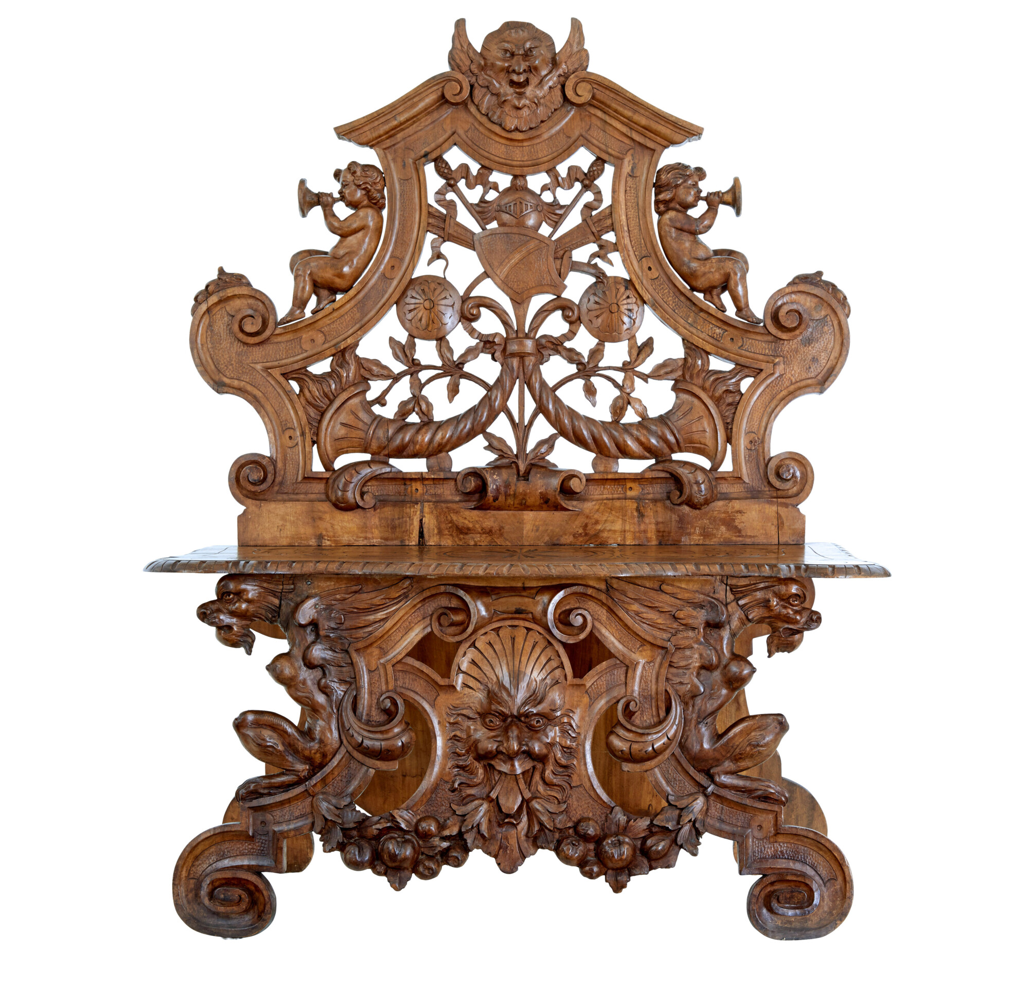 19TH CENTURY CARVED FLEMISH WALNUT DECORATIVE CHAIR - Debenham Antiques