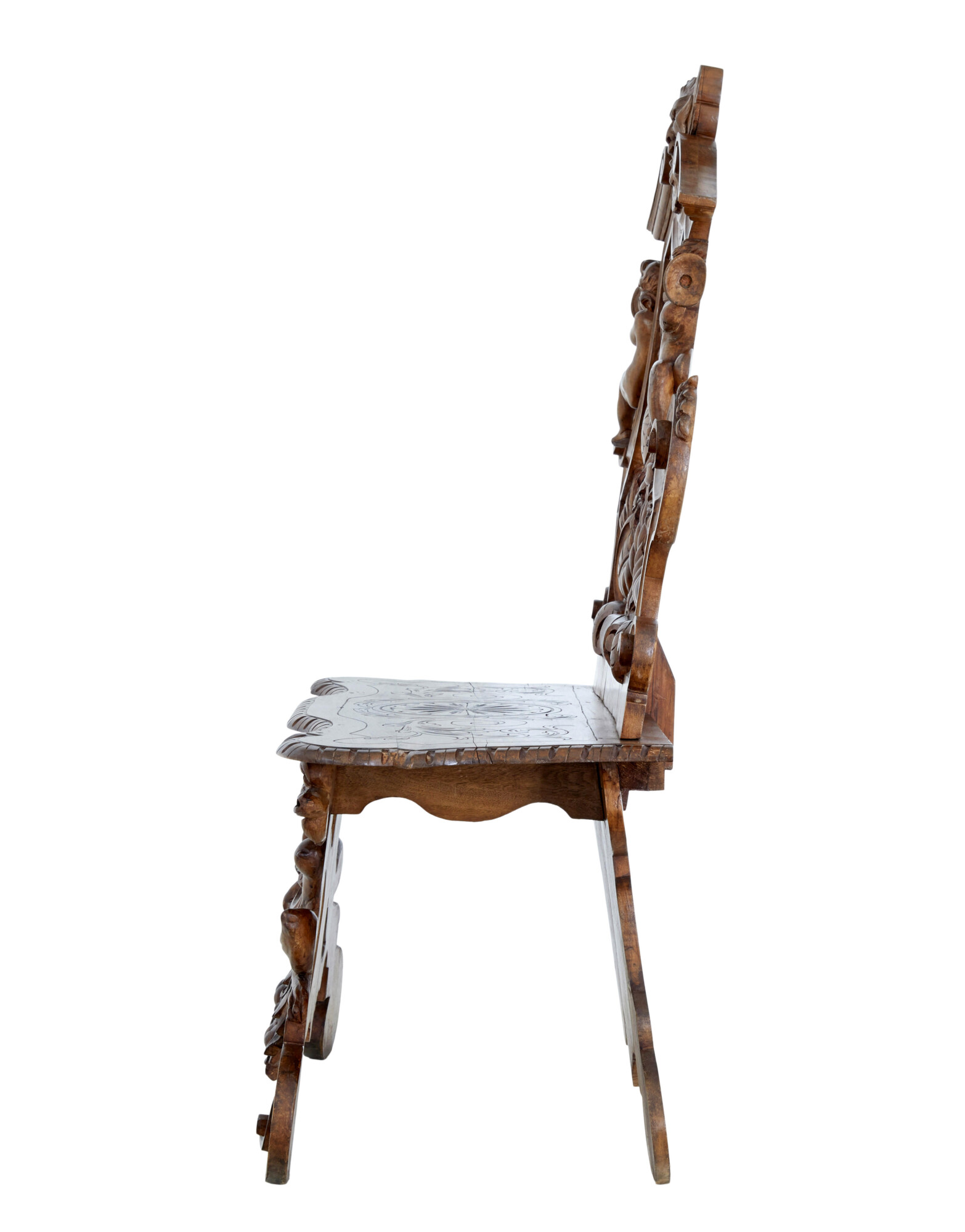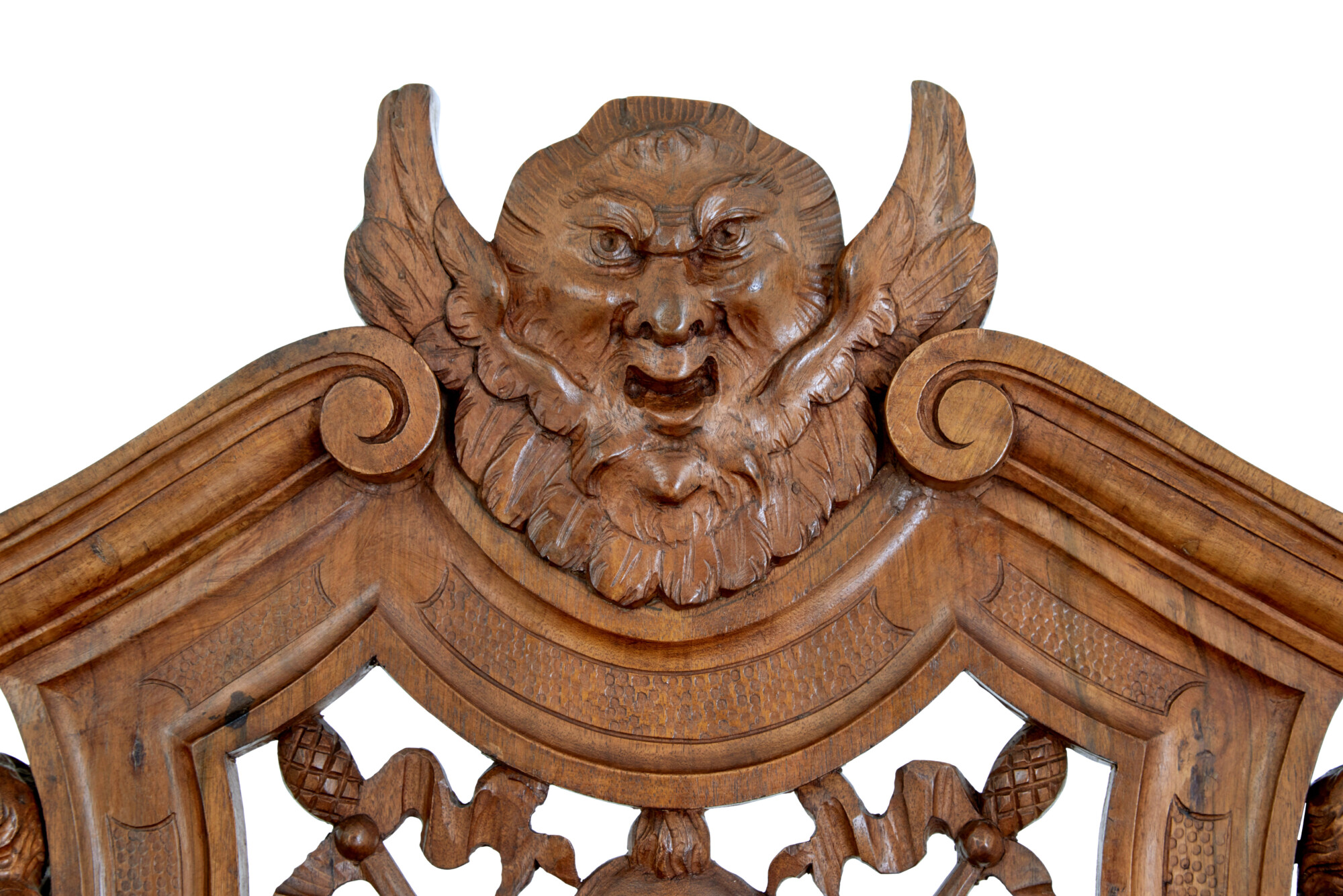 19TH CENTURY HEAVILY CARVED FLEMISH WALNUT DECORATIVE CHAIR CIRCA 1890.