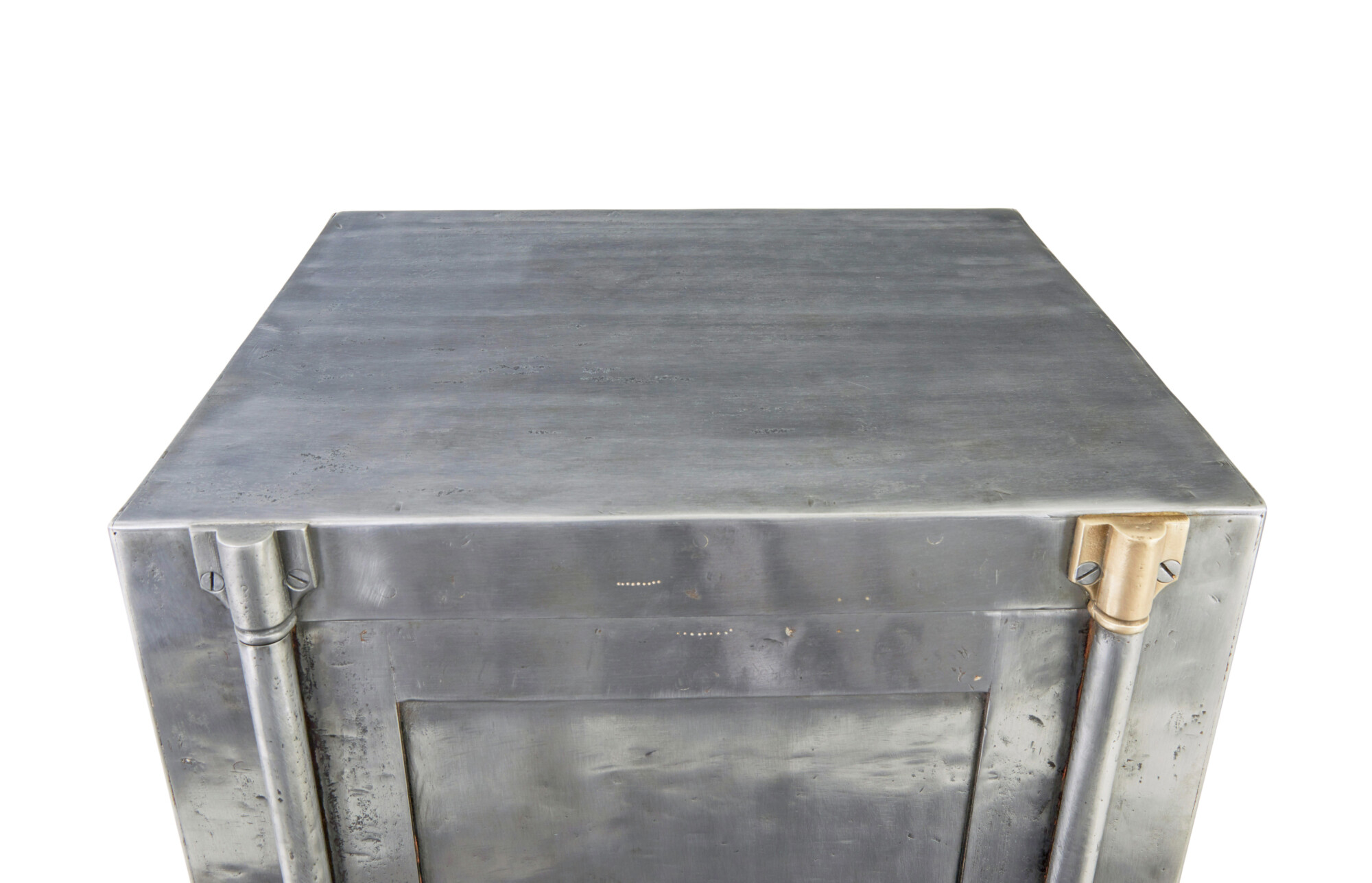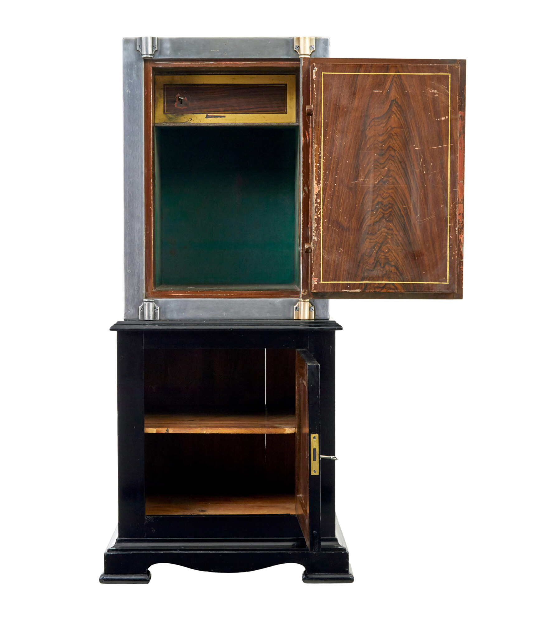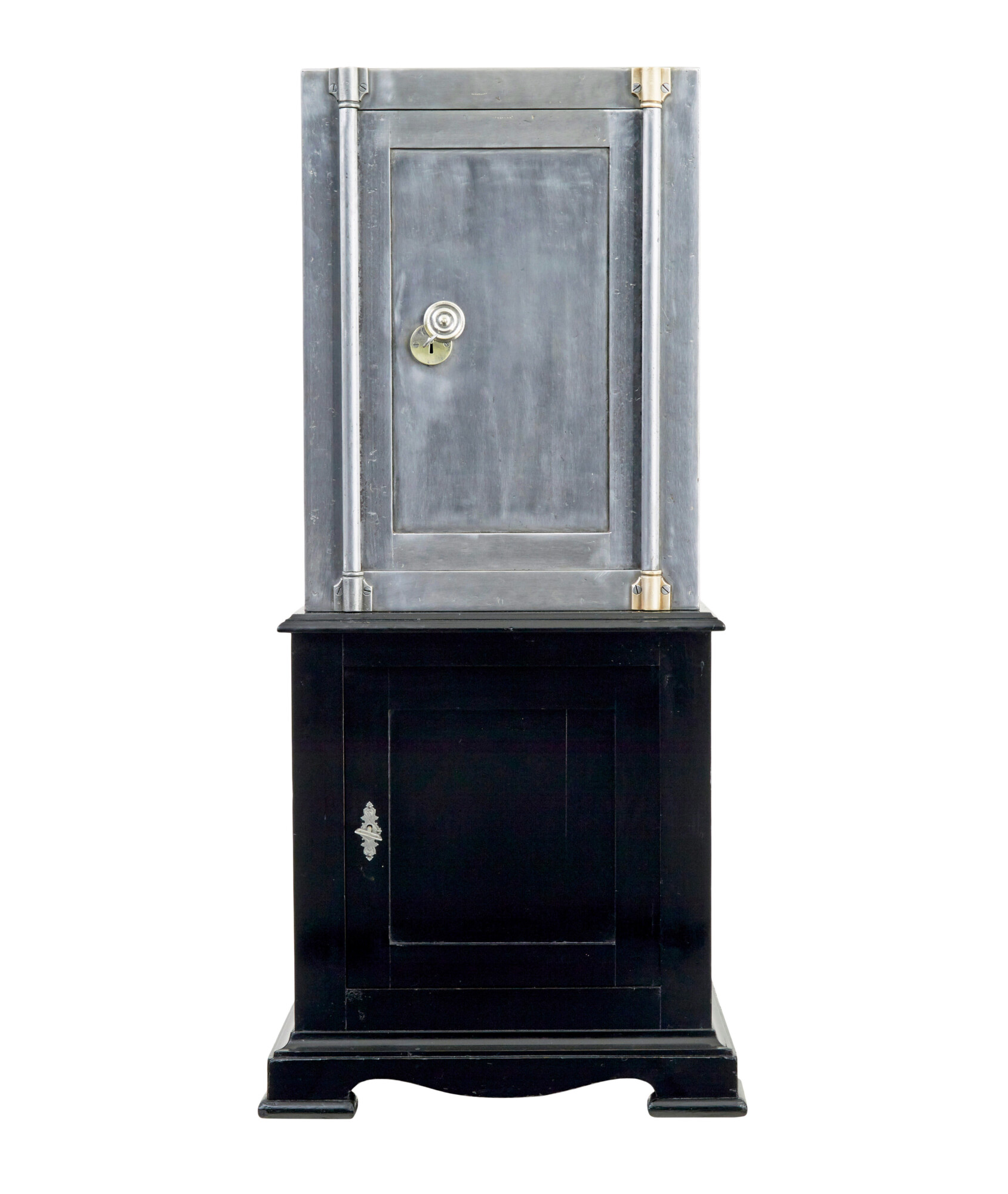 19TH CENTURY DANISH POLISHED STEEL SAFE ON CABINET