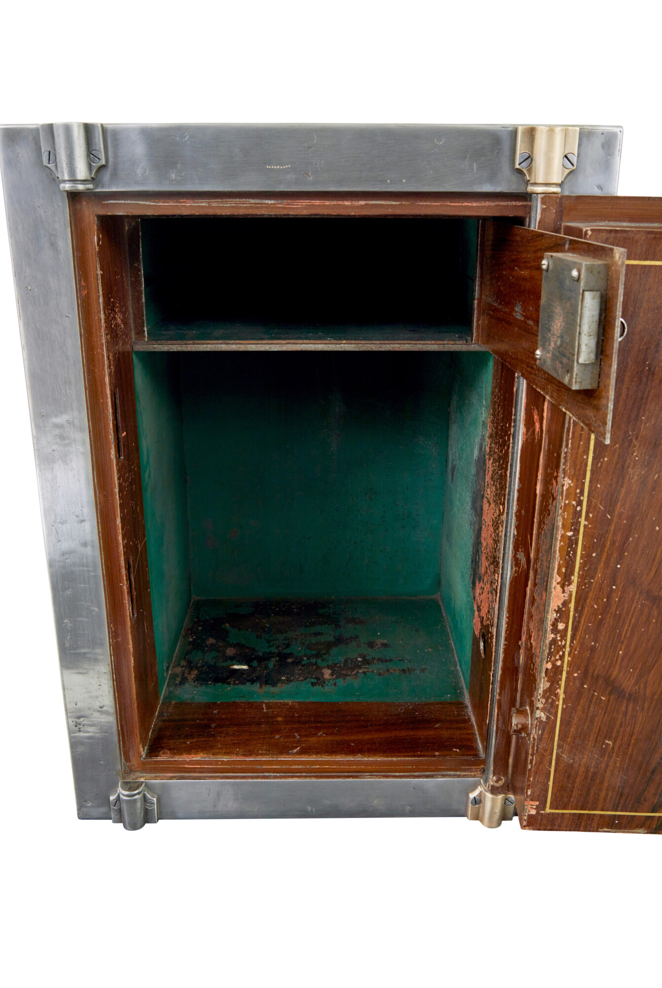 19TH CENTURY DANISH POLISHED STEEL SAFE ON STAND CIRCA 1890.