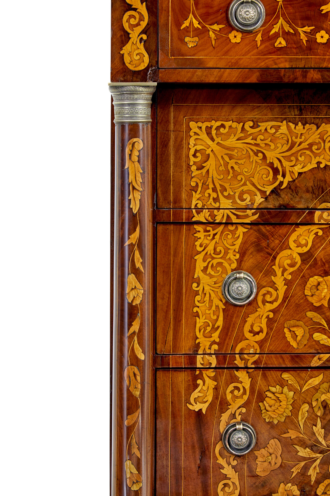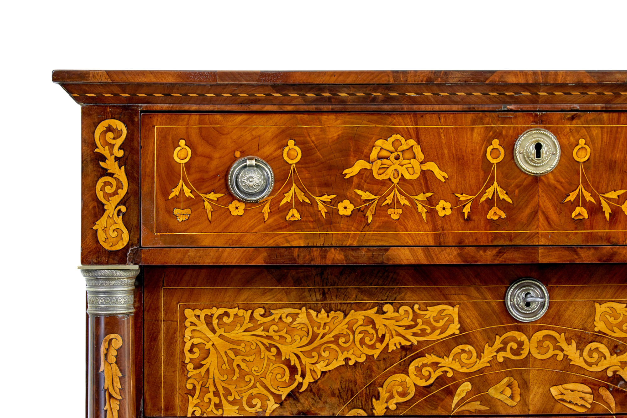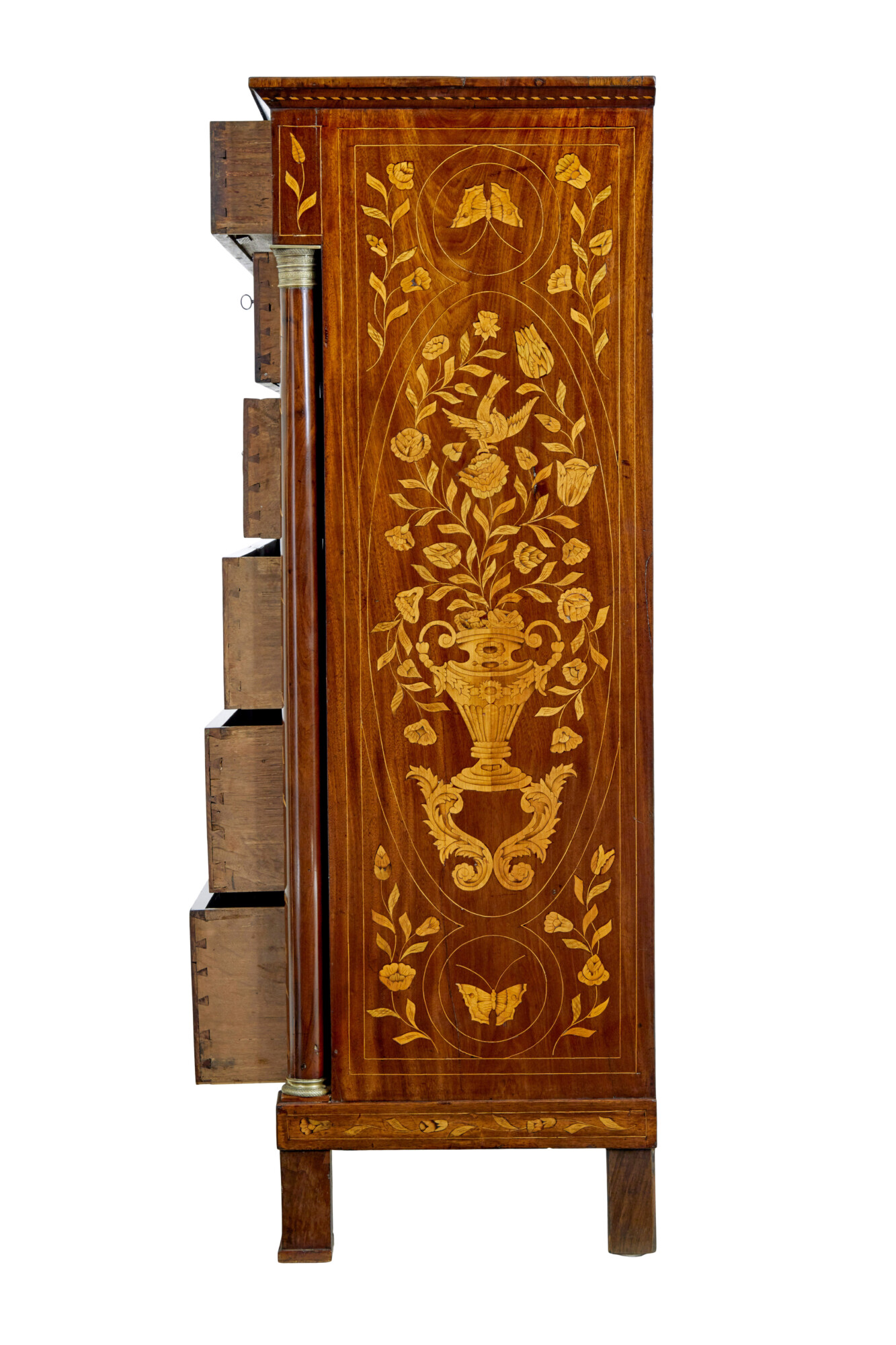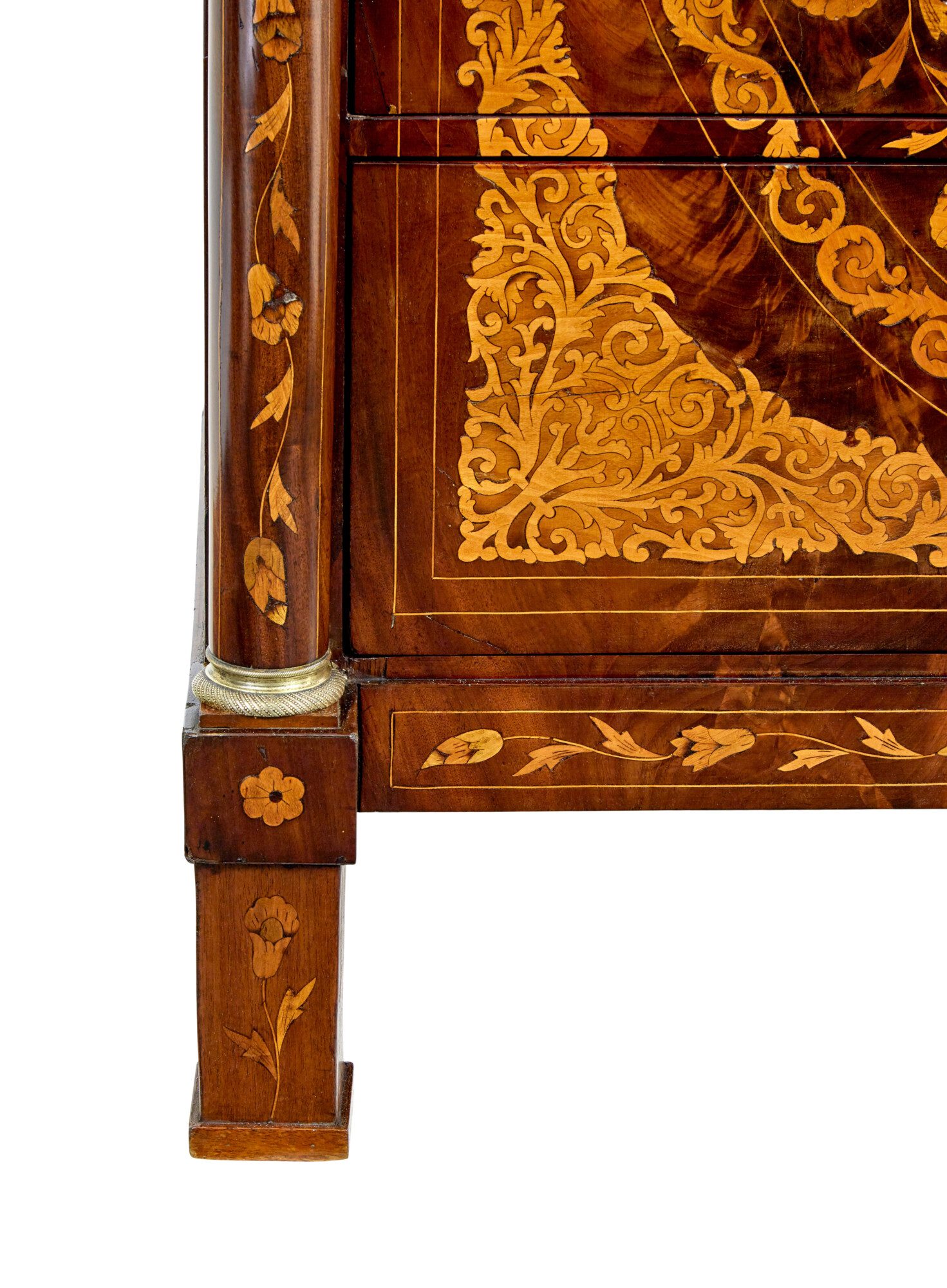 19TH CENTURY FRENCH INLAID MAHOGANY 6-DRAWER INLAID CHEST, CIRCA 1830.