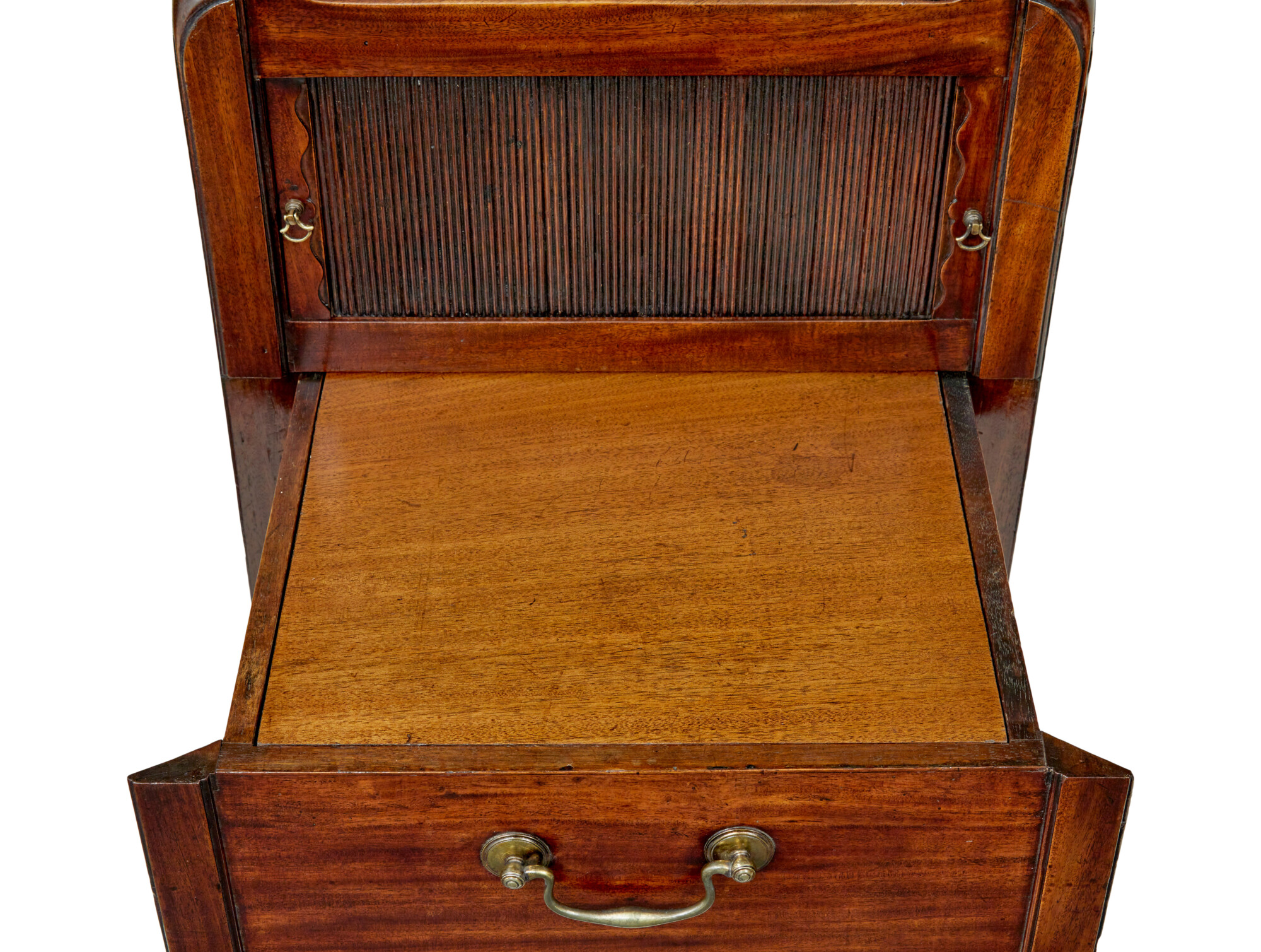 19TH CENTURY GEORGIAN TAMBOUR BEDSIDE TABLE CIRCA 1800.