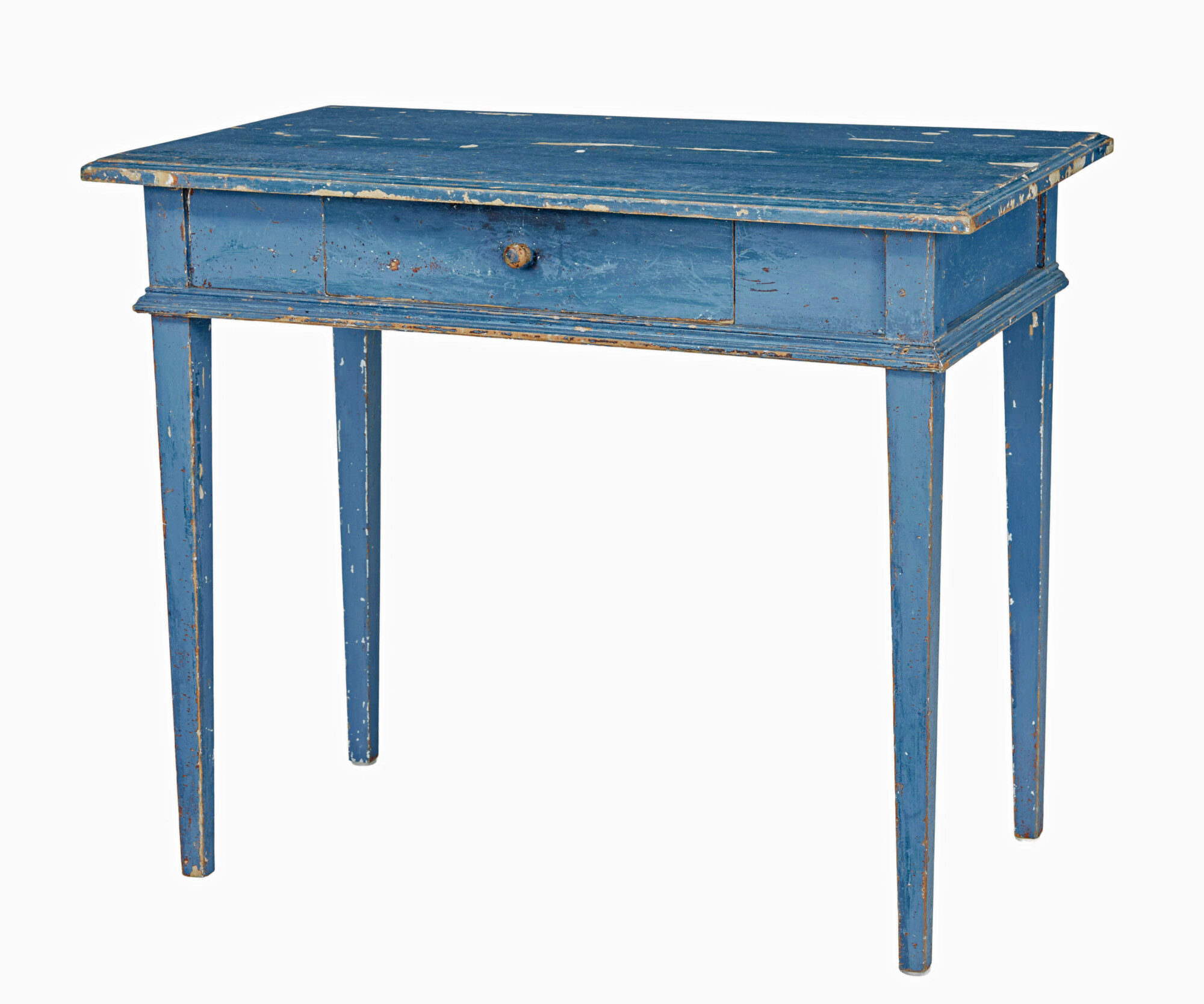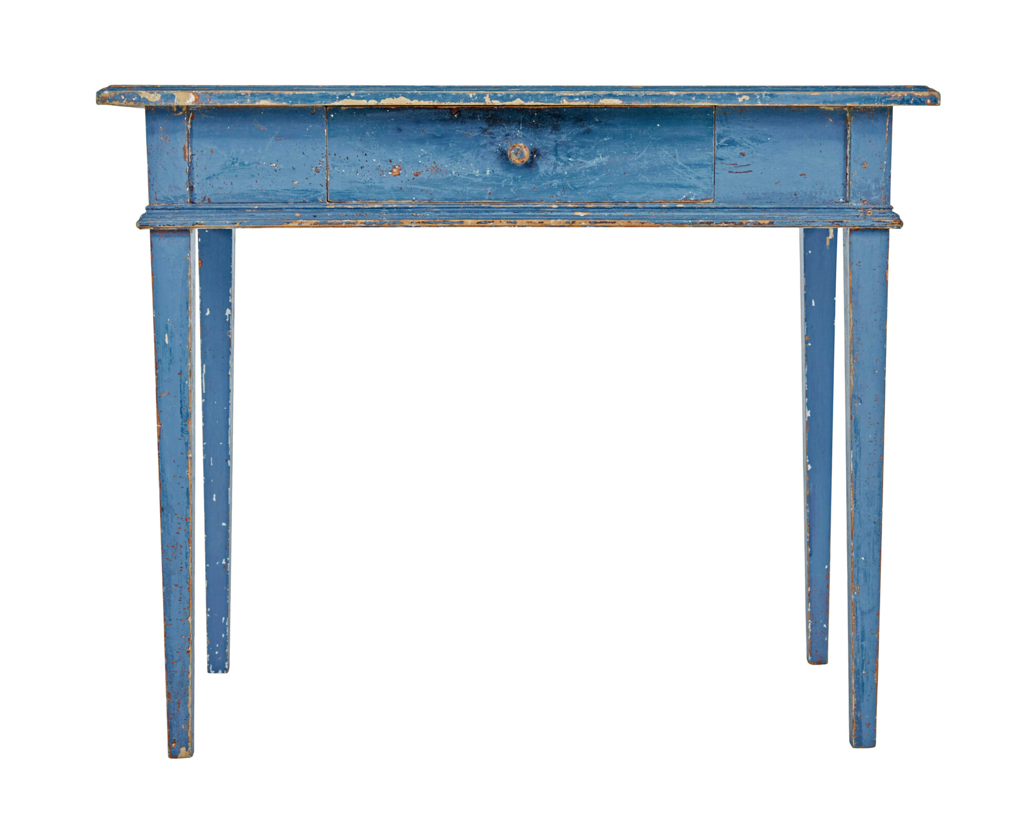 LOVELY TRADITIONAL SWEDISH SIDE TABLE IN ORIGINAL STRIKING BLUE PAINTWORK.