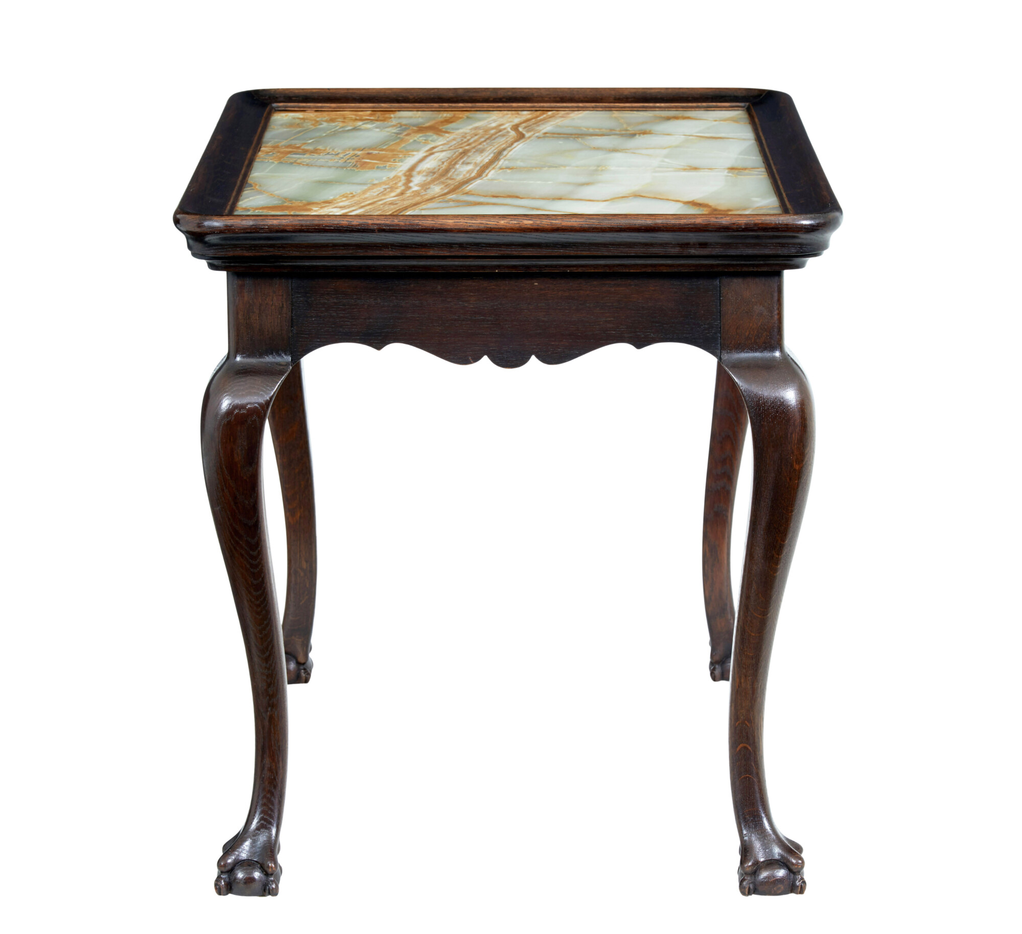 19TH CENTURY OAK CHIPPENDALE INFLUENCED ONYX TOP TABLE CIRCA 1890.