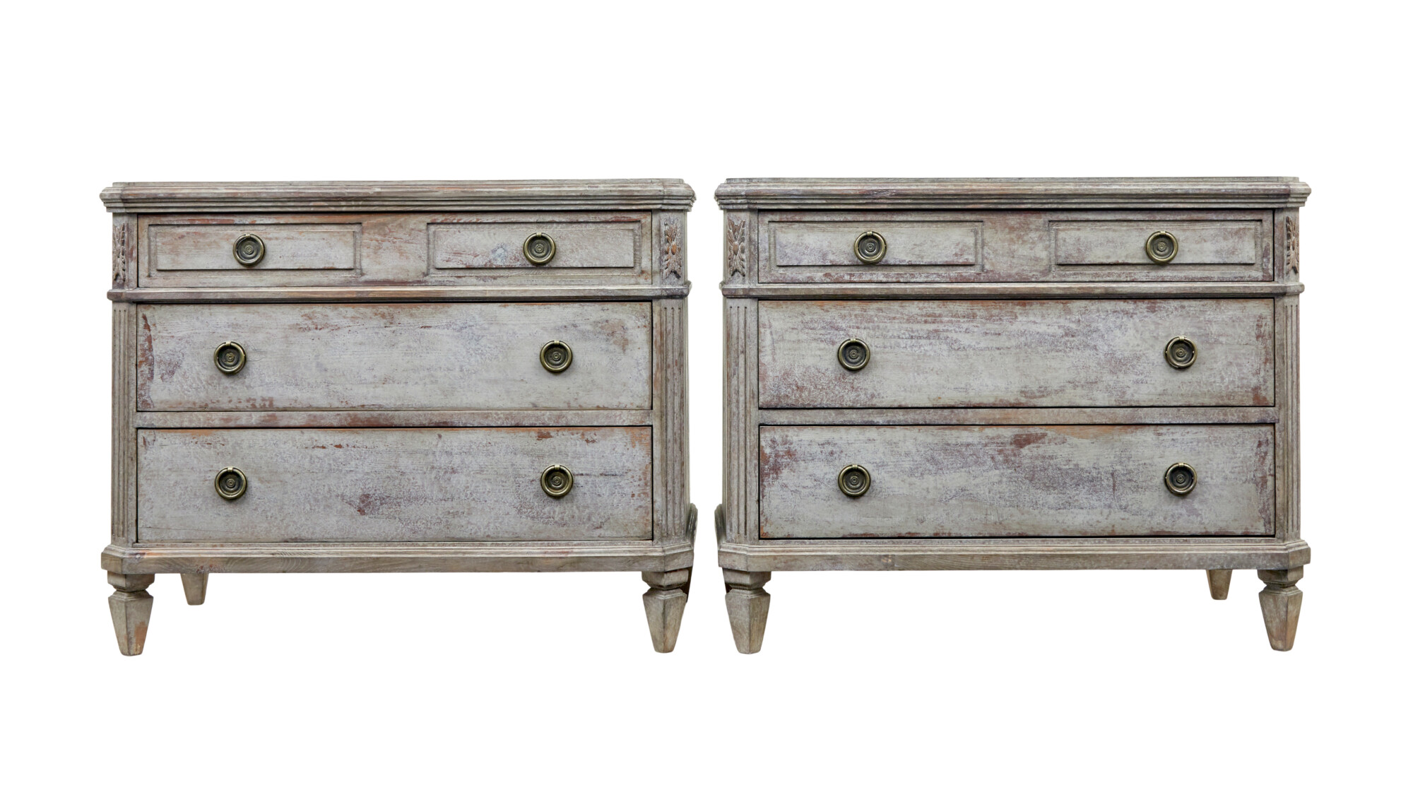 19TH CENTURY PAIR OF SWEDISH HAND PAINTED CHEST OF DRAWERS