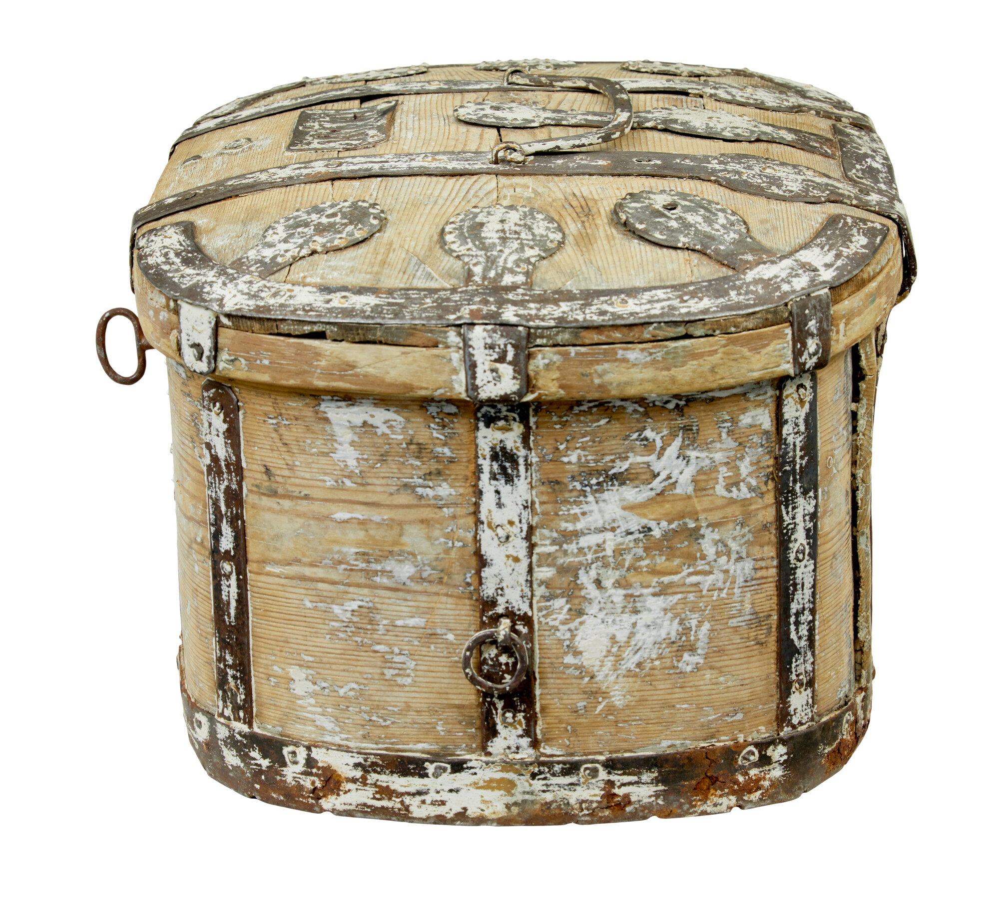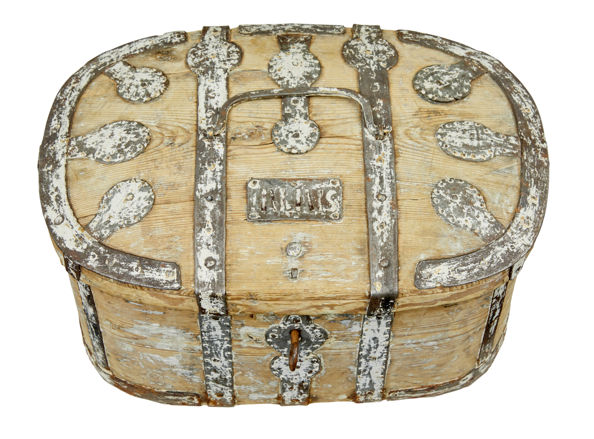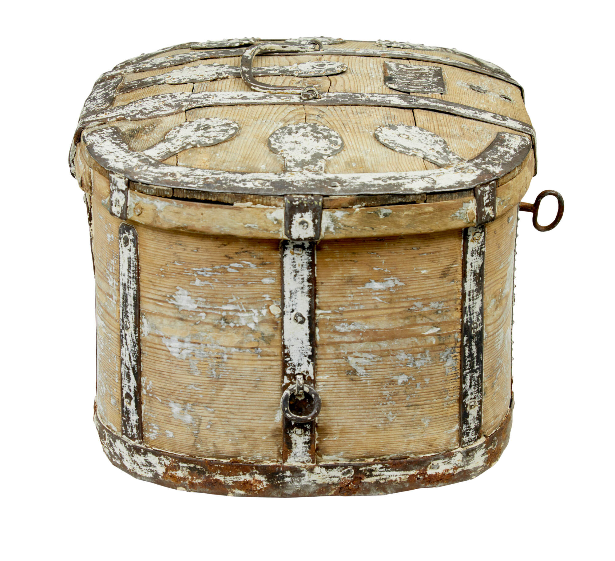 19TH CENTURY SCRAPED PINE SWEDISH STRONG BOX CIRCA 1850.