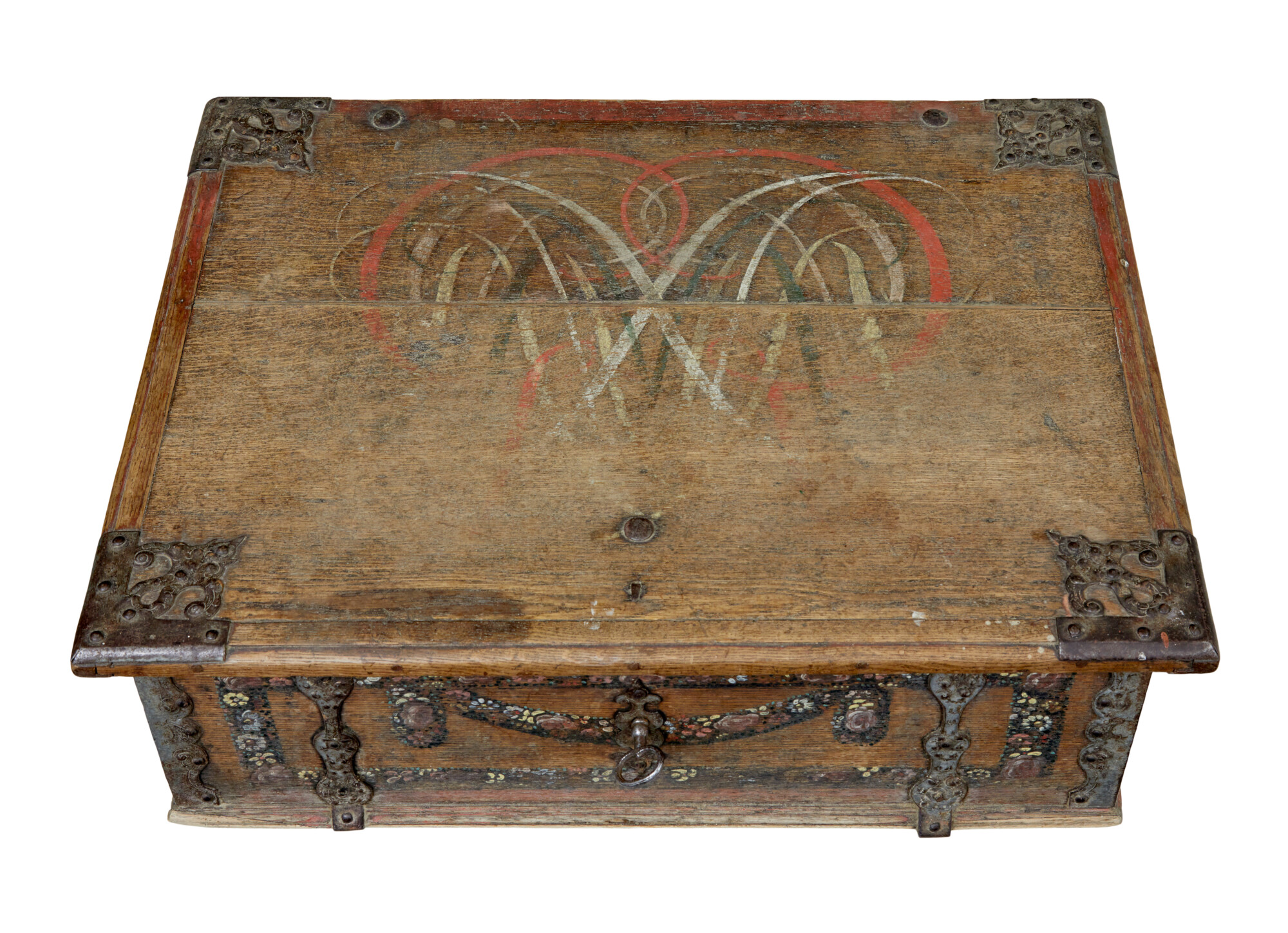 19TH CENTURY SWEDISH HAND PAINTED OAK STRONG BOX