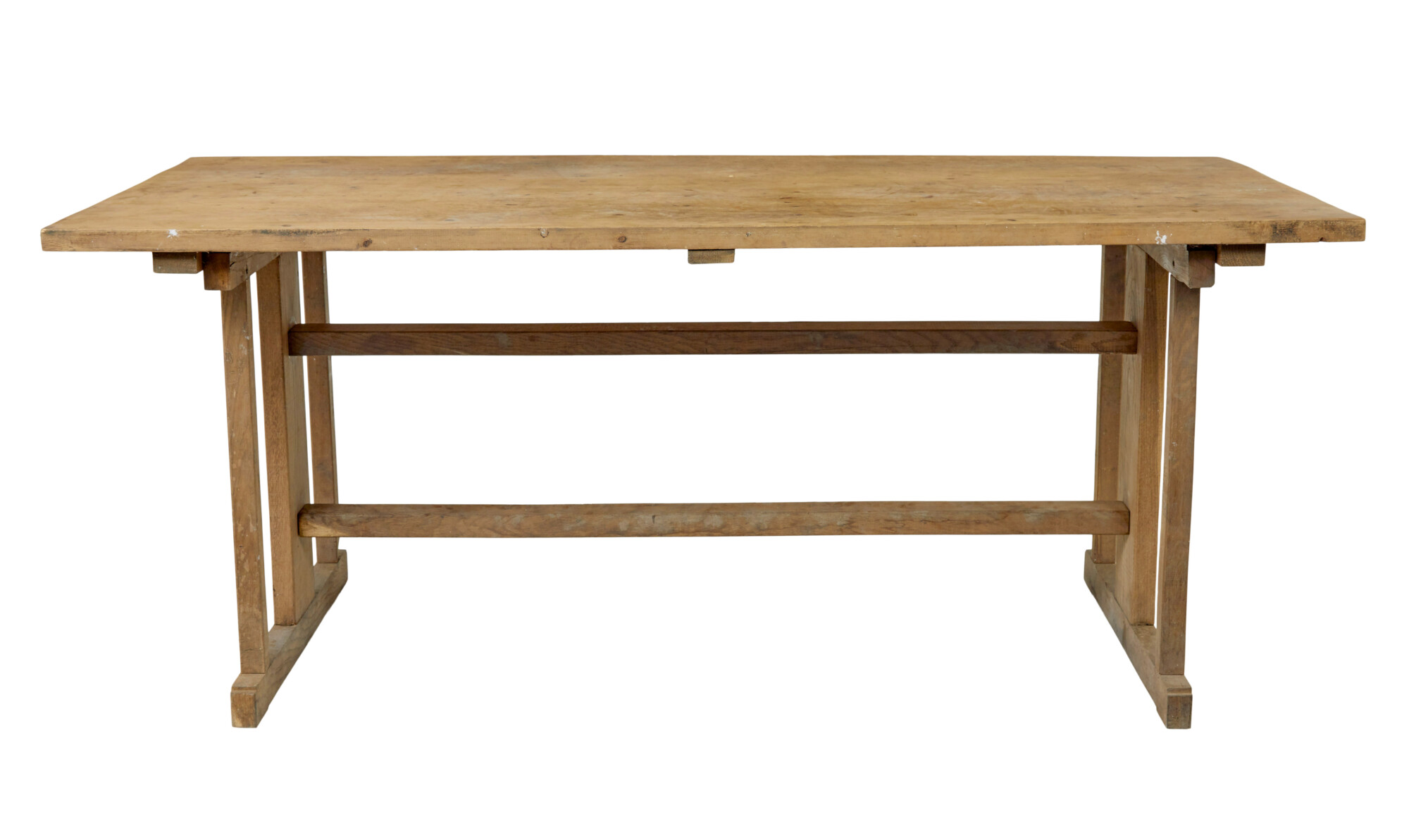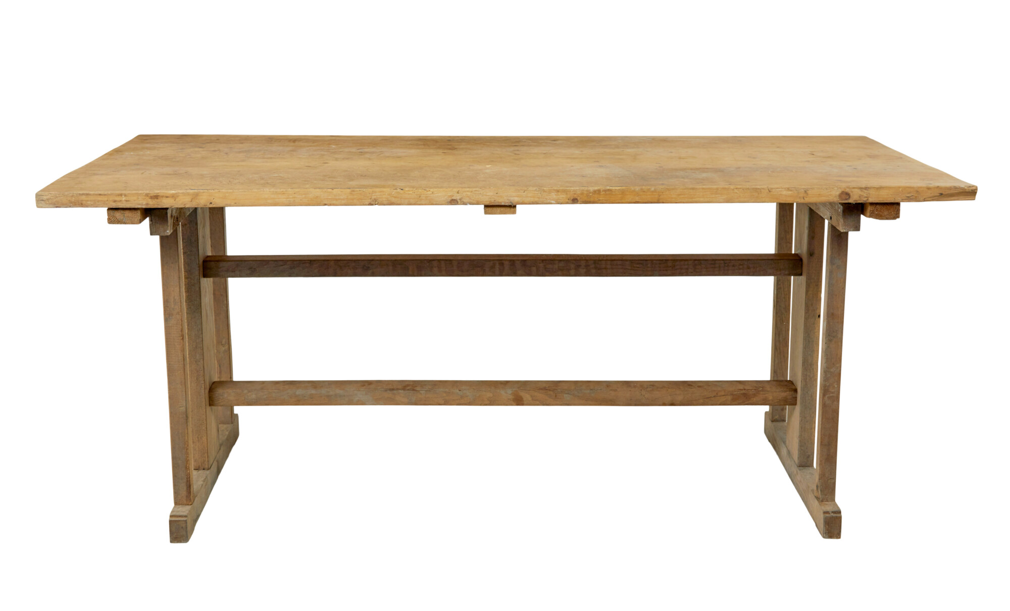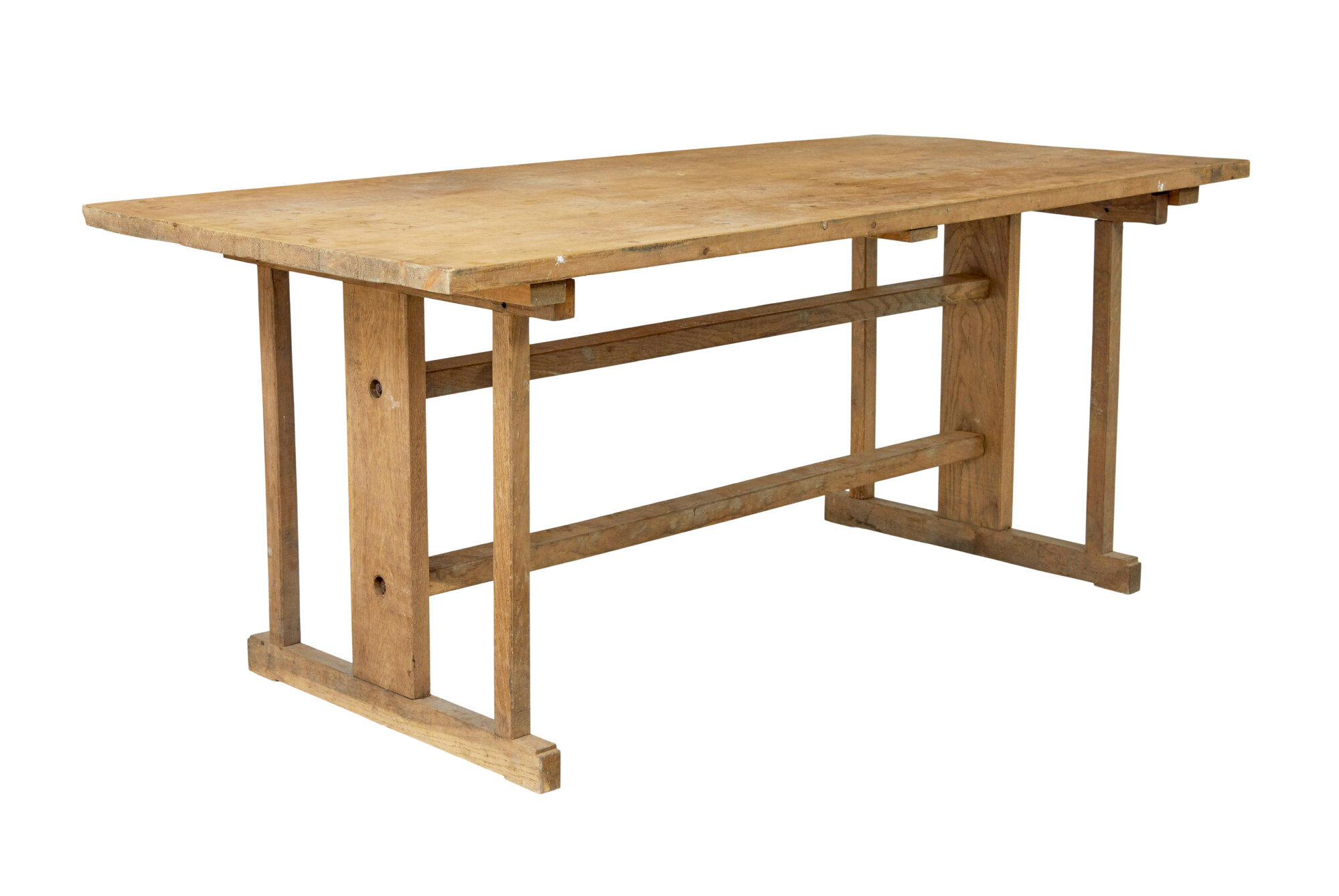 19TH CENTURY SWEDISH OAK AND PINE TRESTLE TABLE CIRCA 1880.