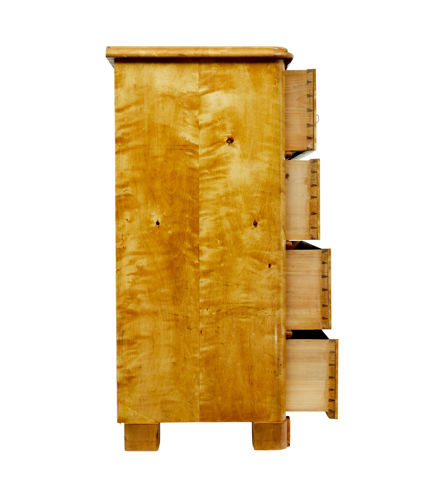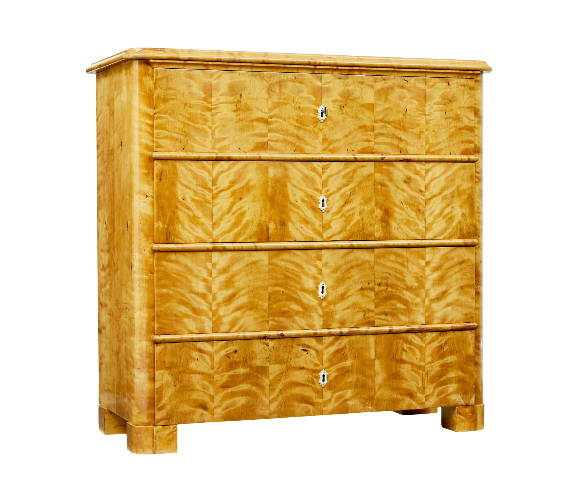 19TH CENTURY SWEDISH TIGER BIRCH CHEST OF DRAWERS