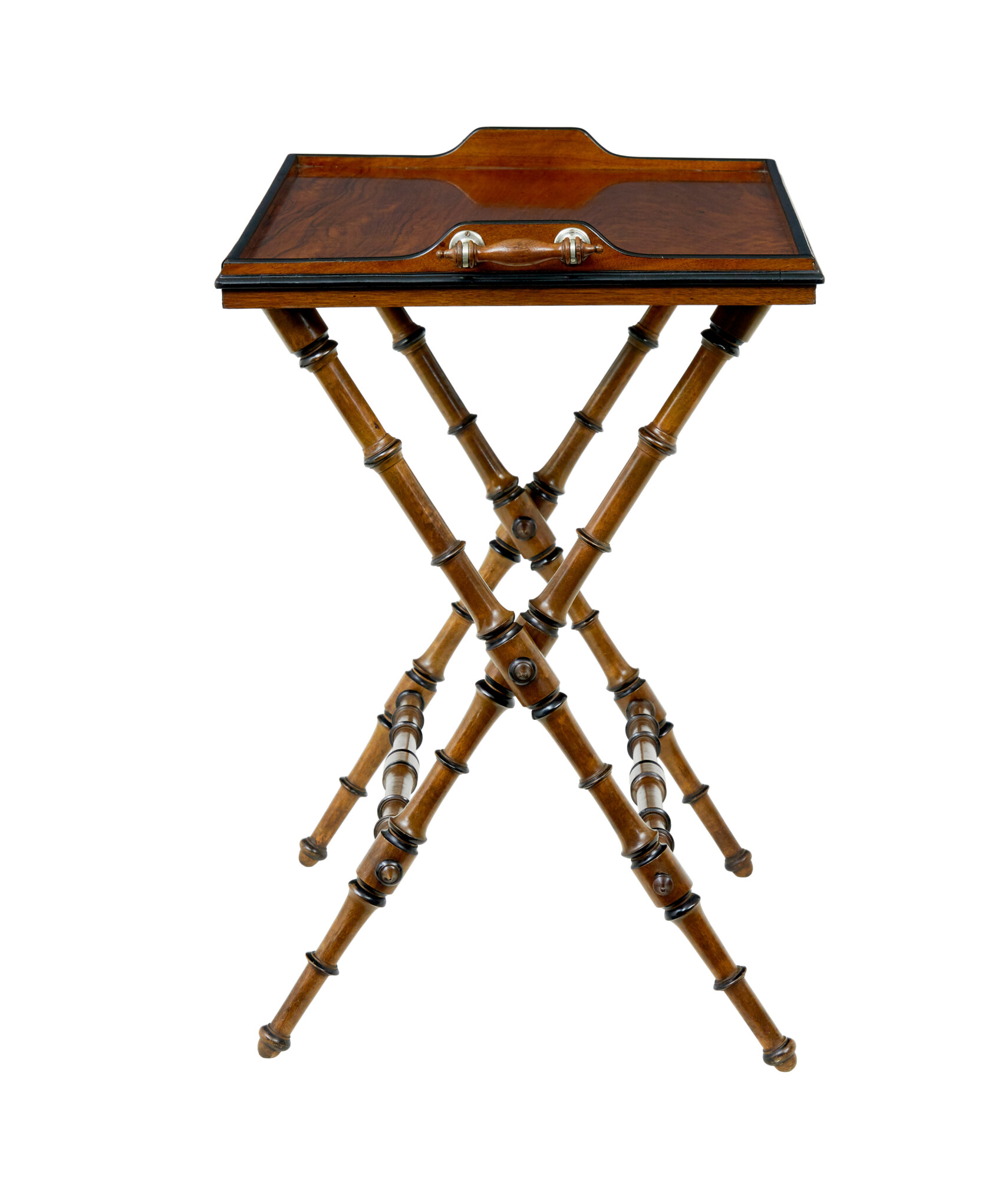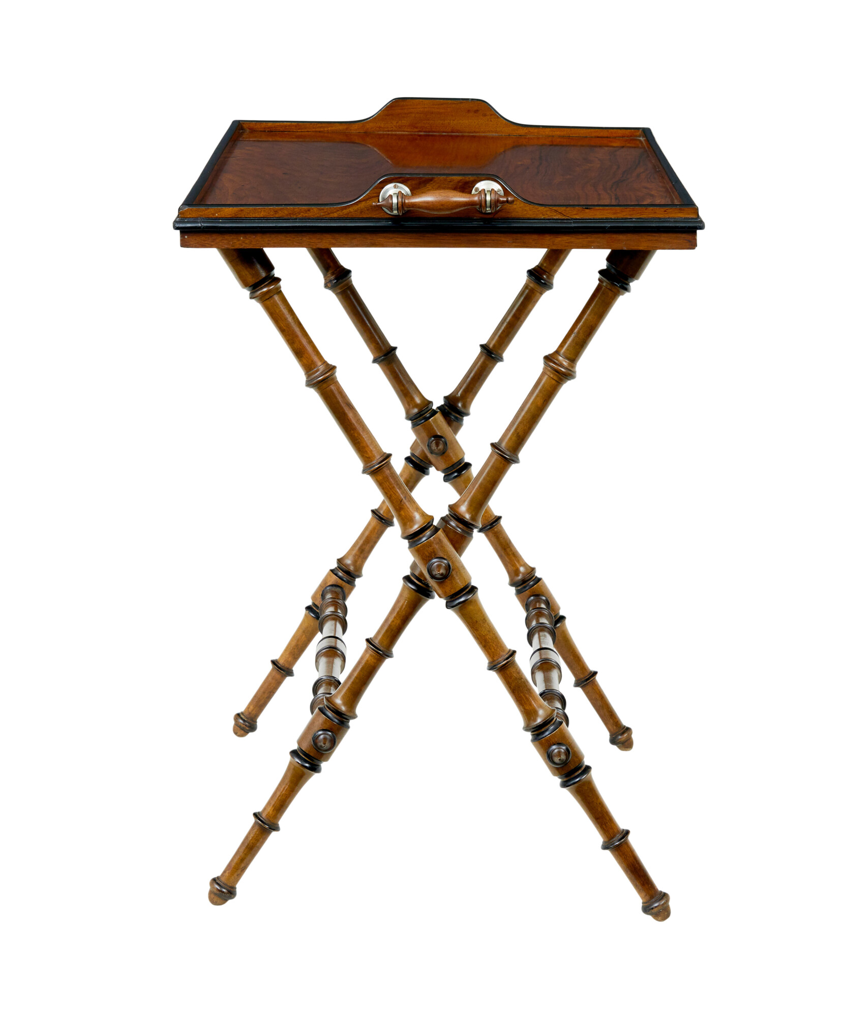 19TH CENTURY WALNUT COLONIAL INSPIRED BUTLERS TRAY ON STAND CIRCA 1880.