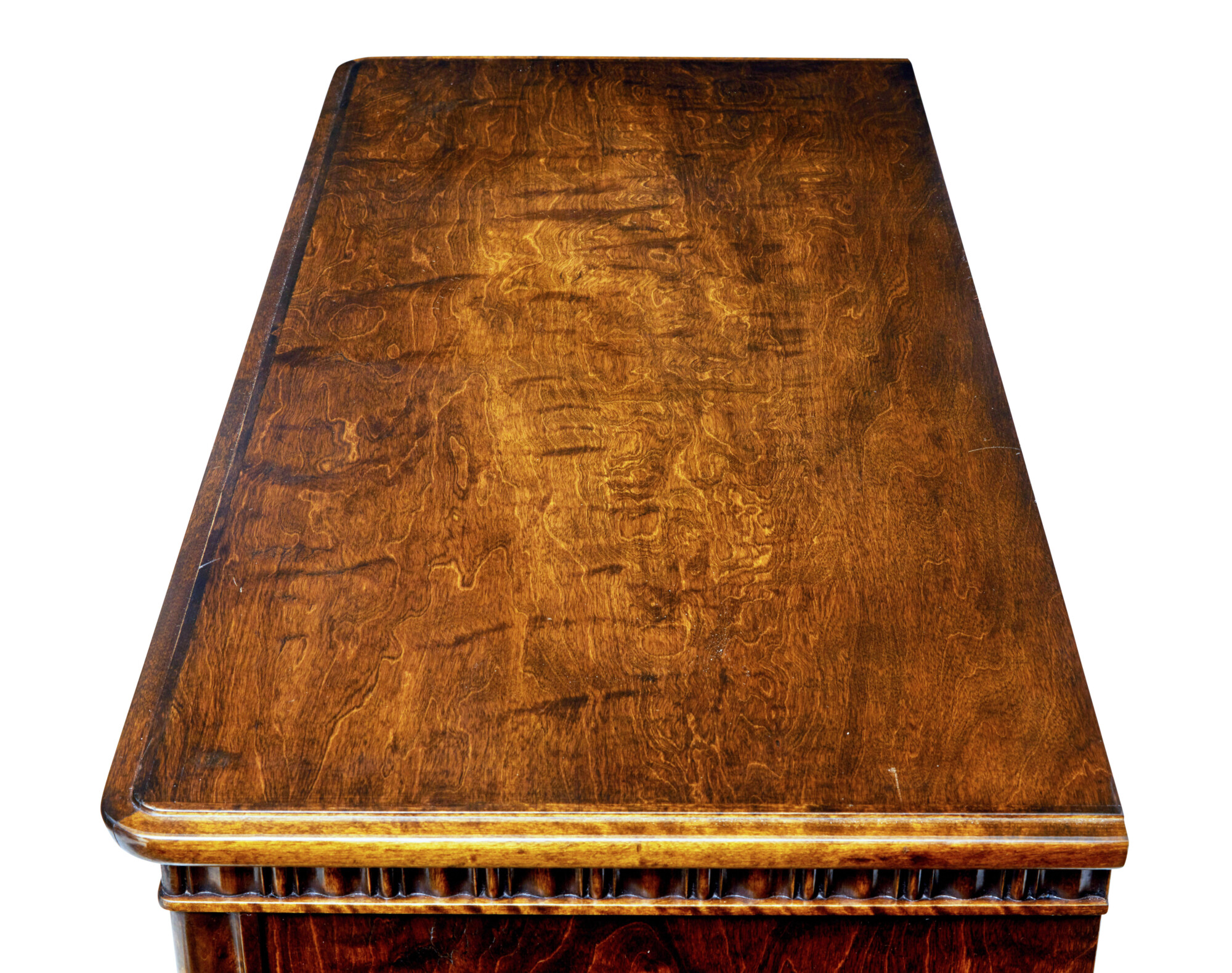 QUARTER VENEER PANEL TO THE FRONT BELOW WHICH APPLIED CARVED SWAGS AND FOLIAGE.