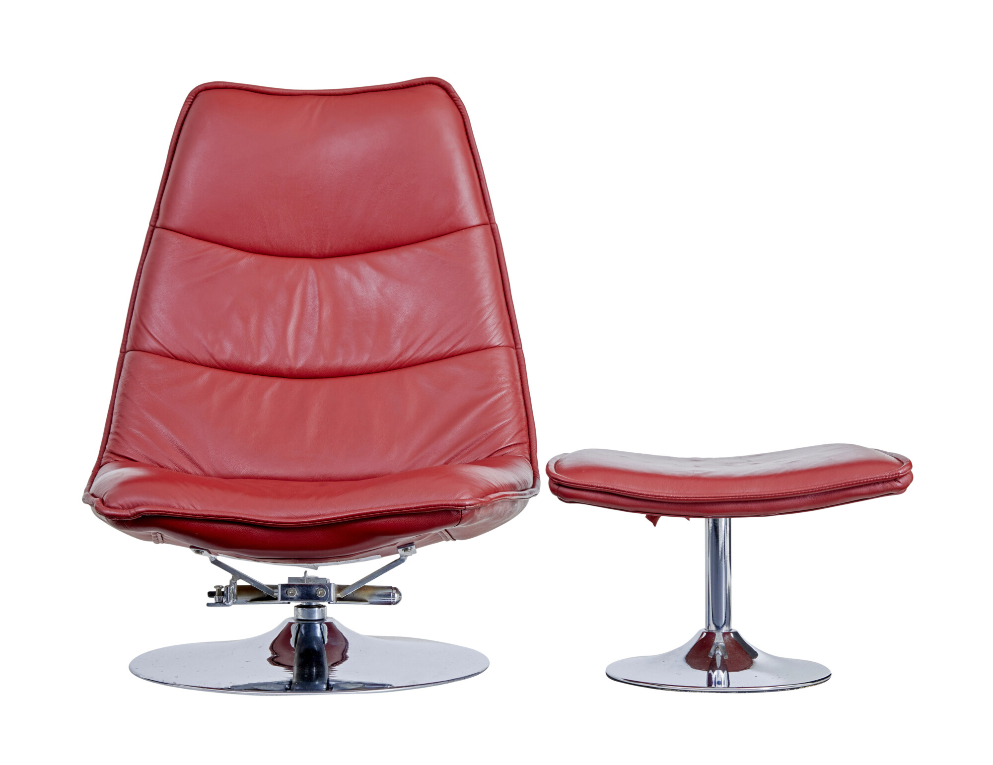 20TH CENTURY CHROME AND LEATHER CHAIR WITH STOOL