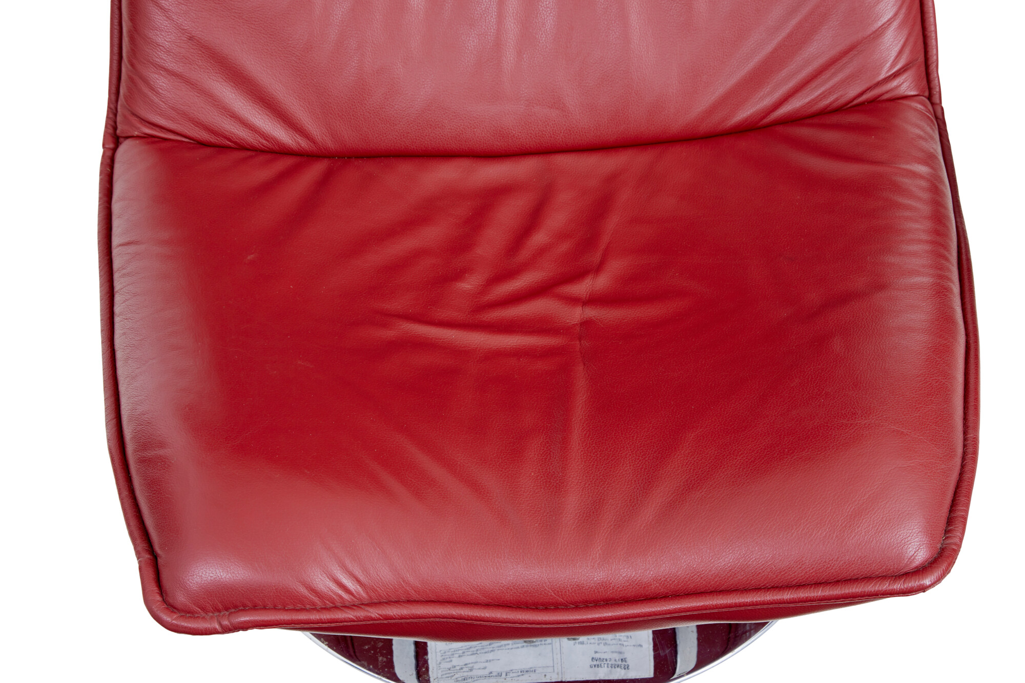 20TH CENTURY CHROME AND LEATHER CHAIR WITH STOOL CIRCA 1980.