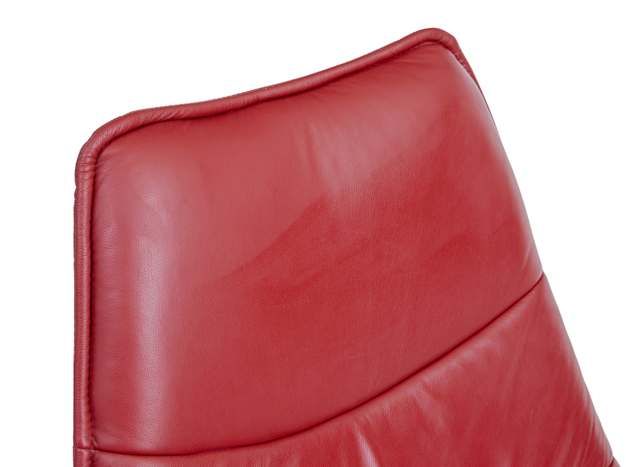 CHAIR FITTED WITH A RECLINING MECHANISM WHICH IS A BEAUTIFUL FEATURE IN ITSELF. ORIGINAL LEATHER WITH EXPECTED WEAR AND MINOR CREASES, SURFACE MARKS AND FADING TO CHROMED ELEMENTS. PLEASE SEE PICTURES.