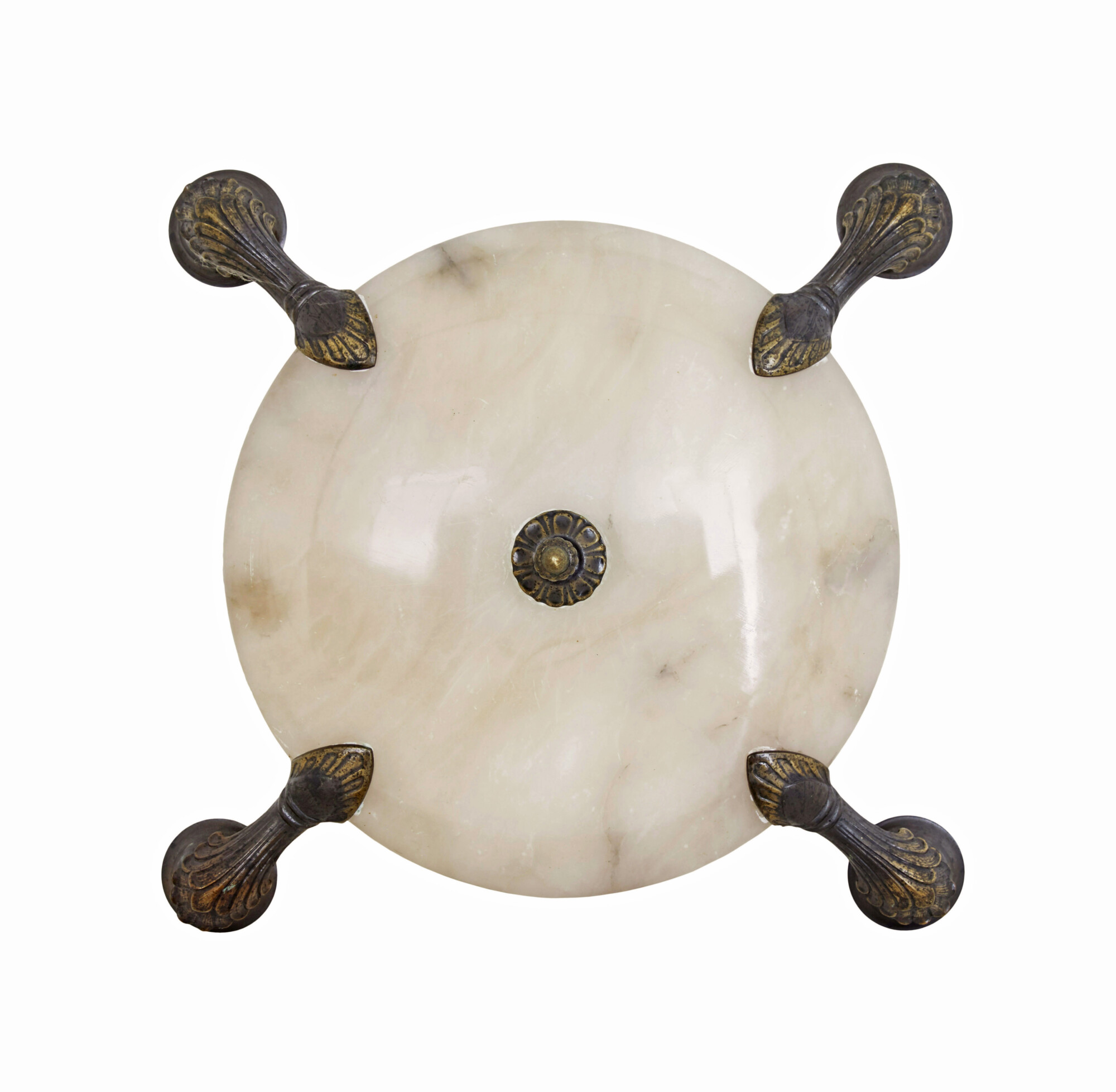 MINOR SURFACE MARKS TO ALABASTER. SMALL LOSS TO ALABASTER ON EDGE BUT NOT SEEN FROM UNDERNEATH.