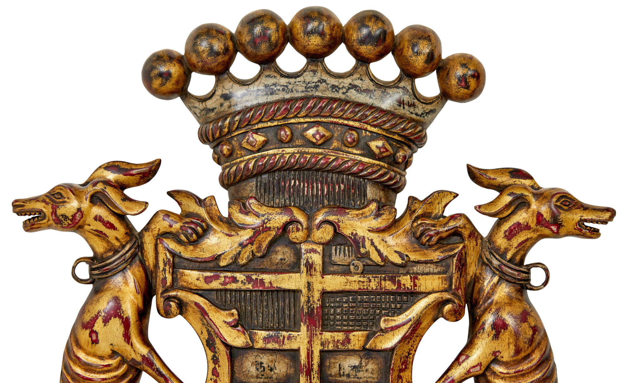 DECORATIVE GREYHOUND HAND CARVED HERALDIC COAT OF ARMS