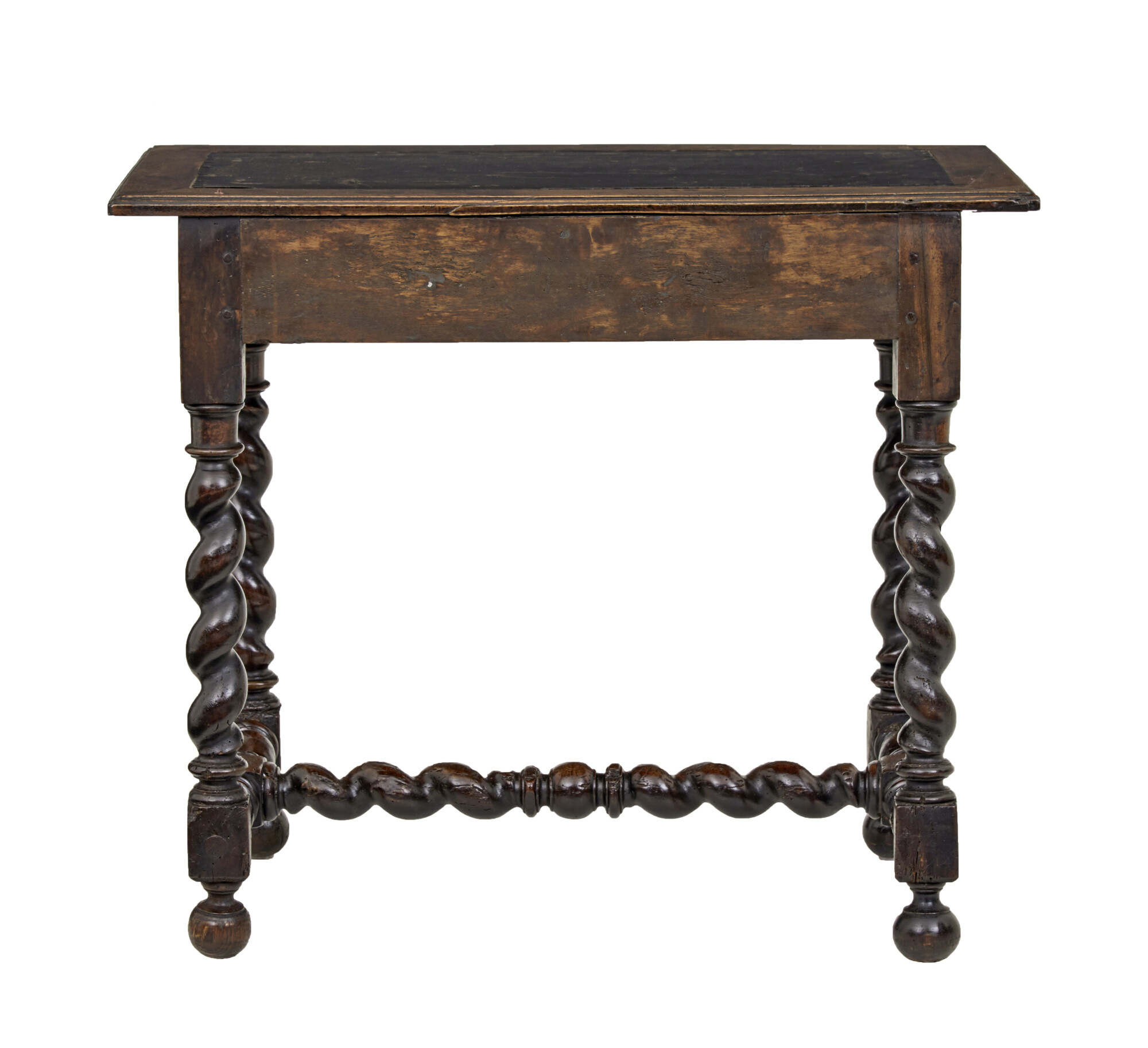 STANDING ON BARLEY TWIST LEGS AND STRETCHERS, TERMINATING ON A BALL FOOT.