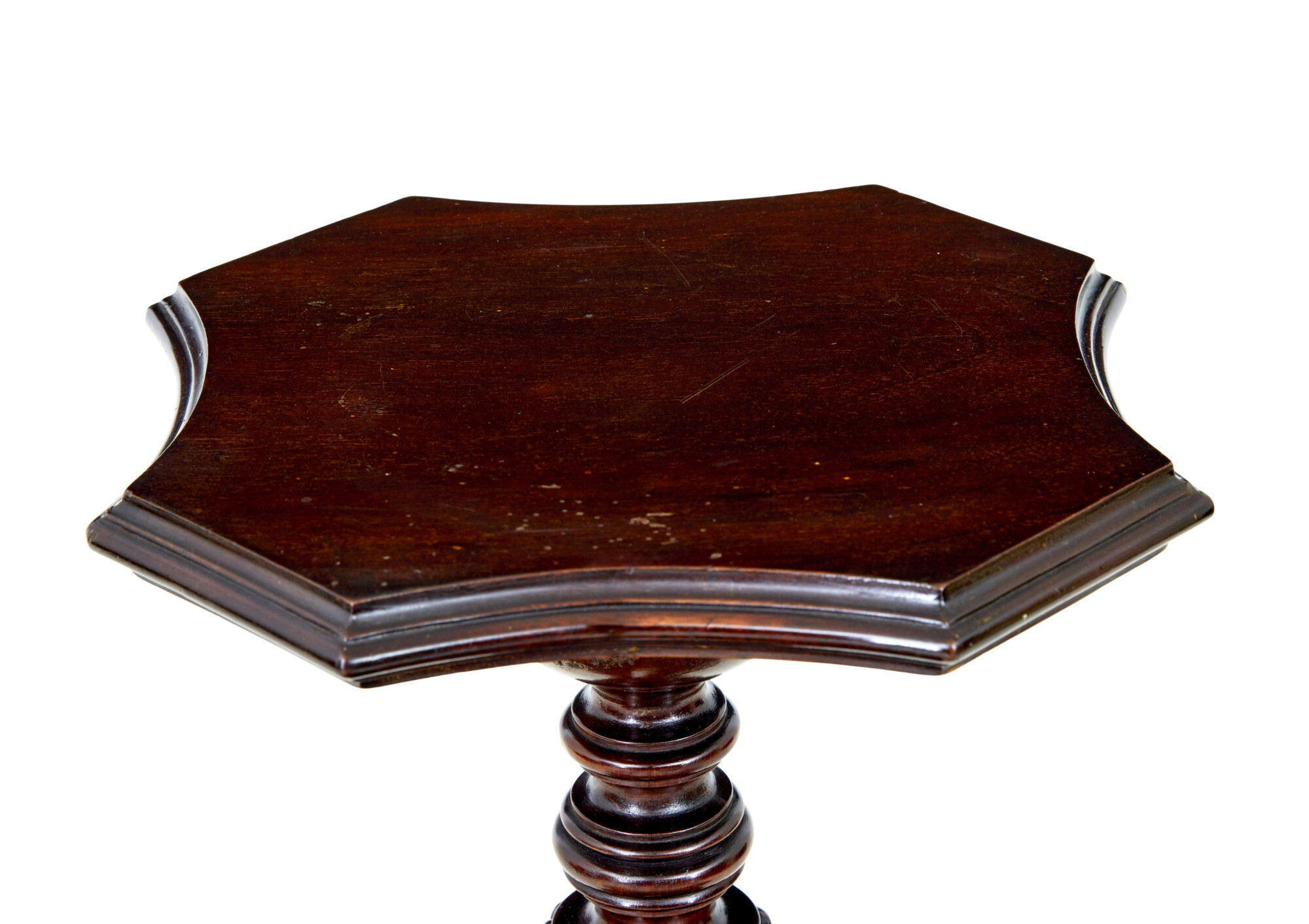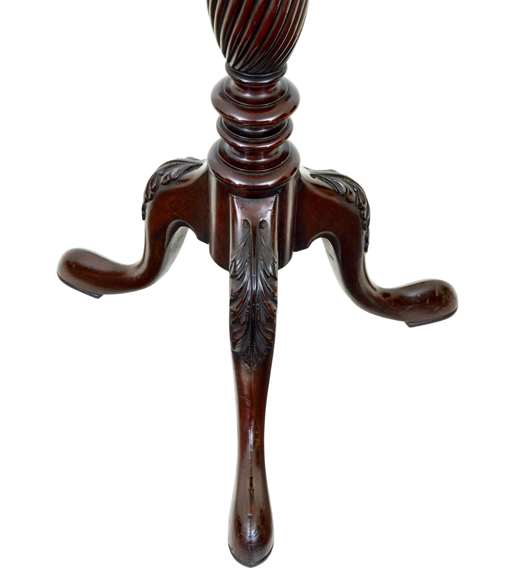 SHAPED TOP WITH AN 11″ X 11″ AREA. SUPPORTED BY A TURNED AND CARVED STEM, STANDING ON 3 CABRIOLE LEGS, WITH CARVED ACANTHUS LEAF DETAIL, FINISHING ON A PAD FOOT.