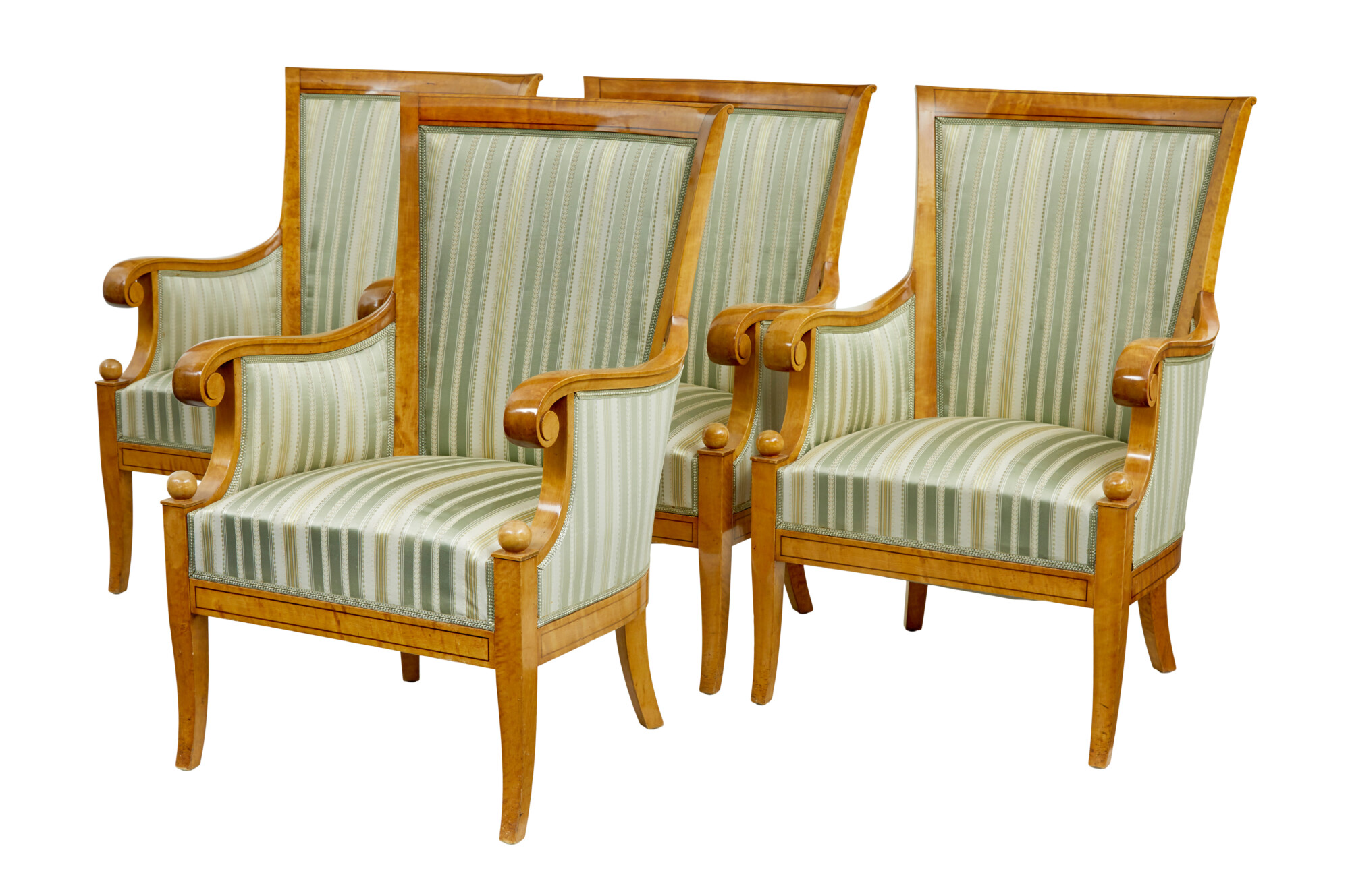 EARLY 20TH CENTURY SET OF 4 KARL JOHAN INFLUENCED BIRCH ARMCHAIRS