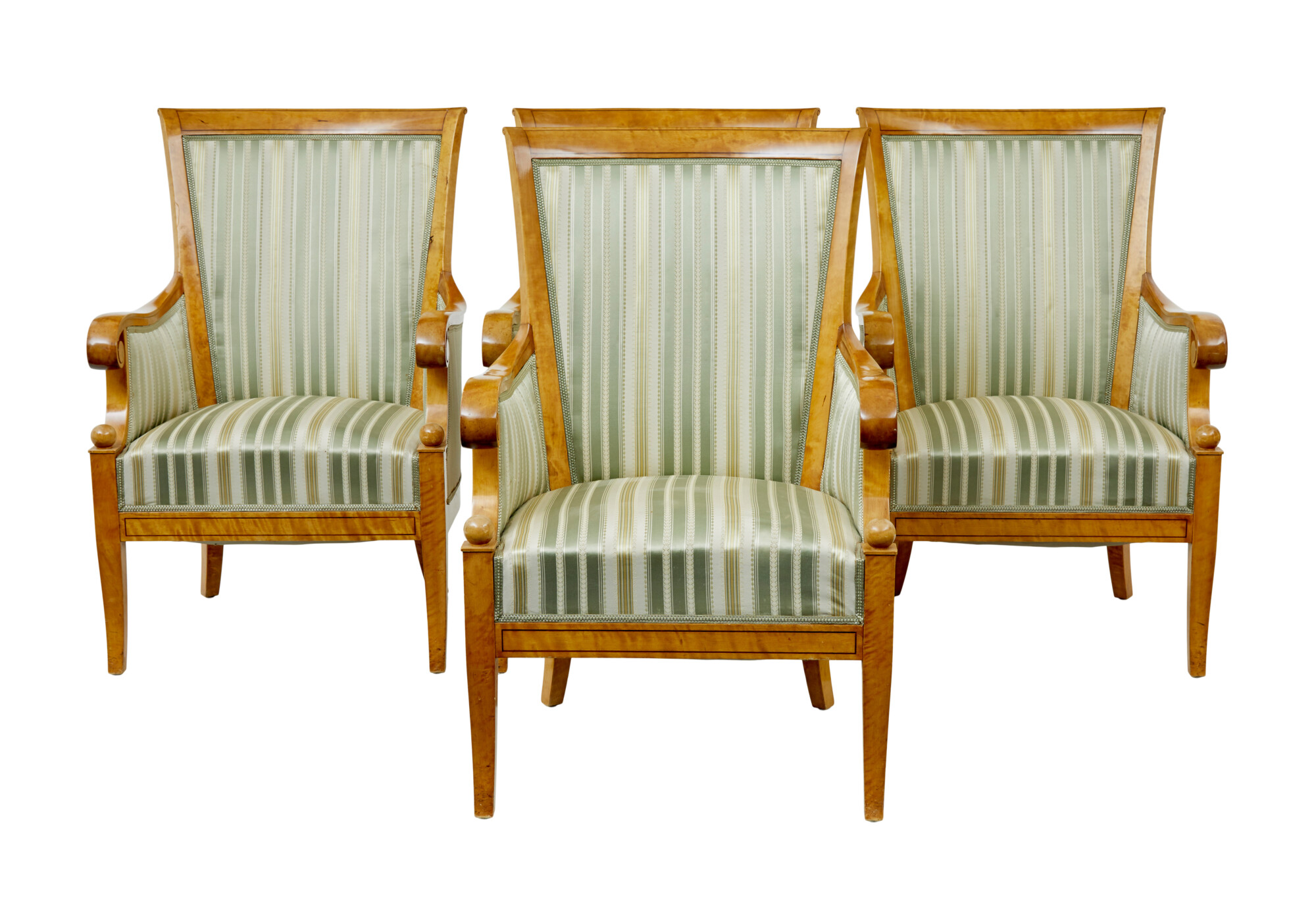 EARLY 20TH CENTURY SET OF 4 KARL JOHAN INFLUENCED BIRCH ARMCHAIRS CIRCA 1900.