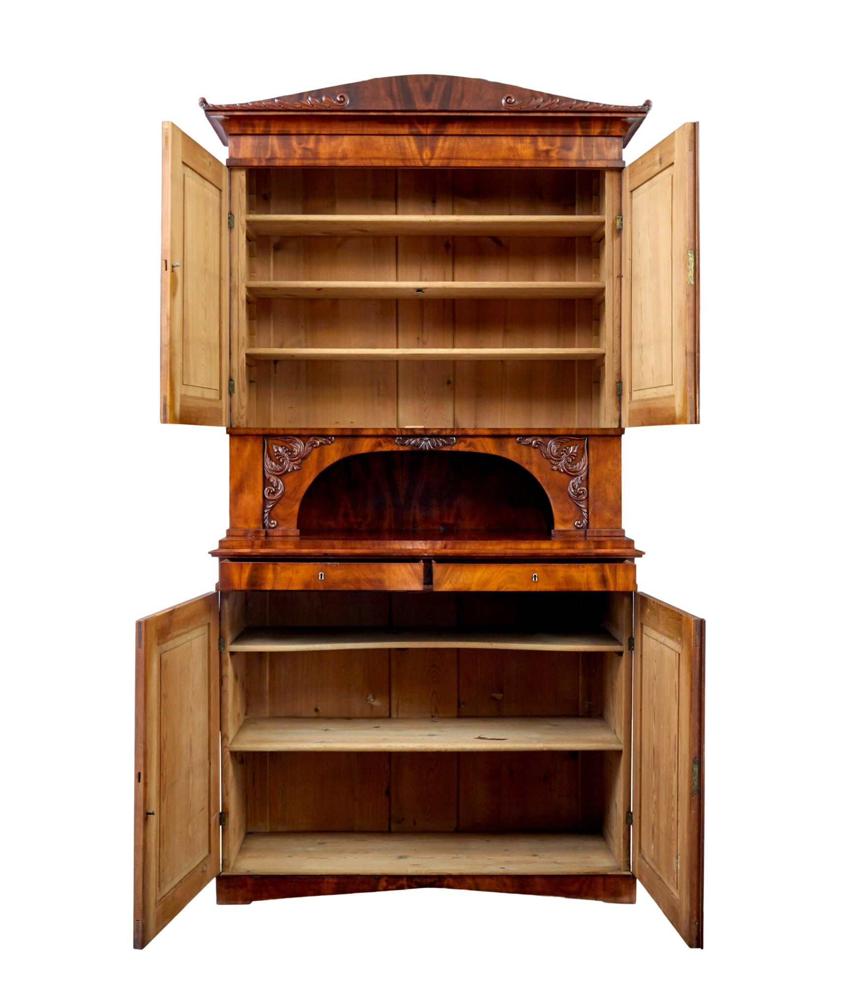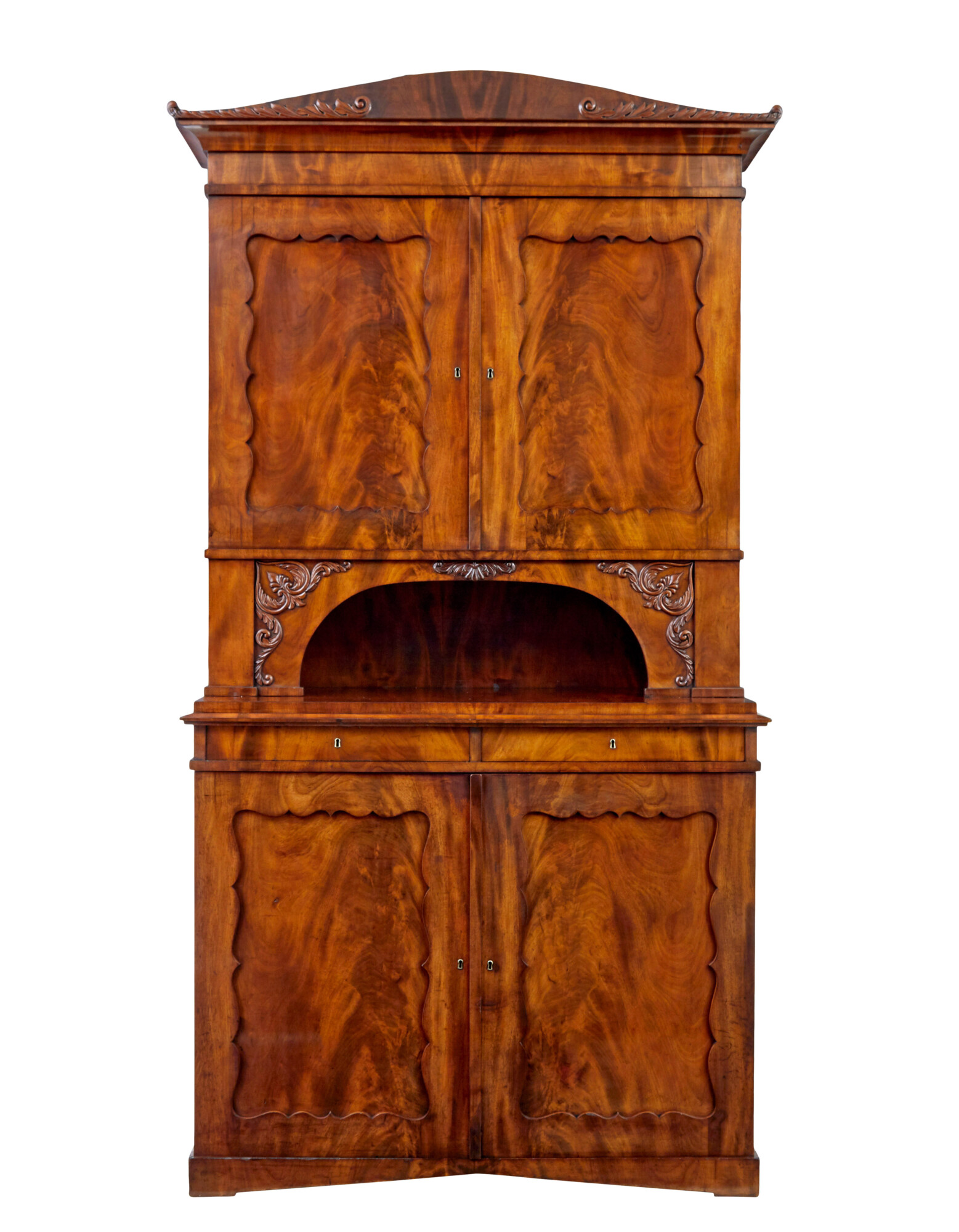 GOOD QUALITY DANISH 2 PART TALL MAHOGANY CABINET CIRCA 1860.