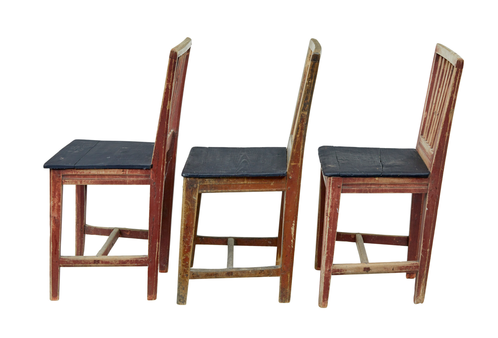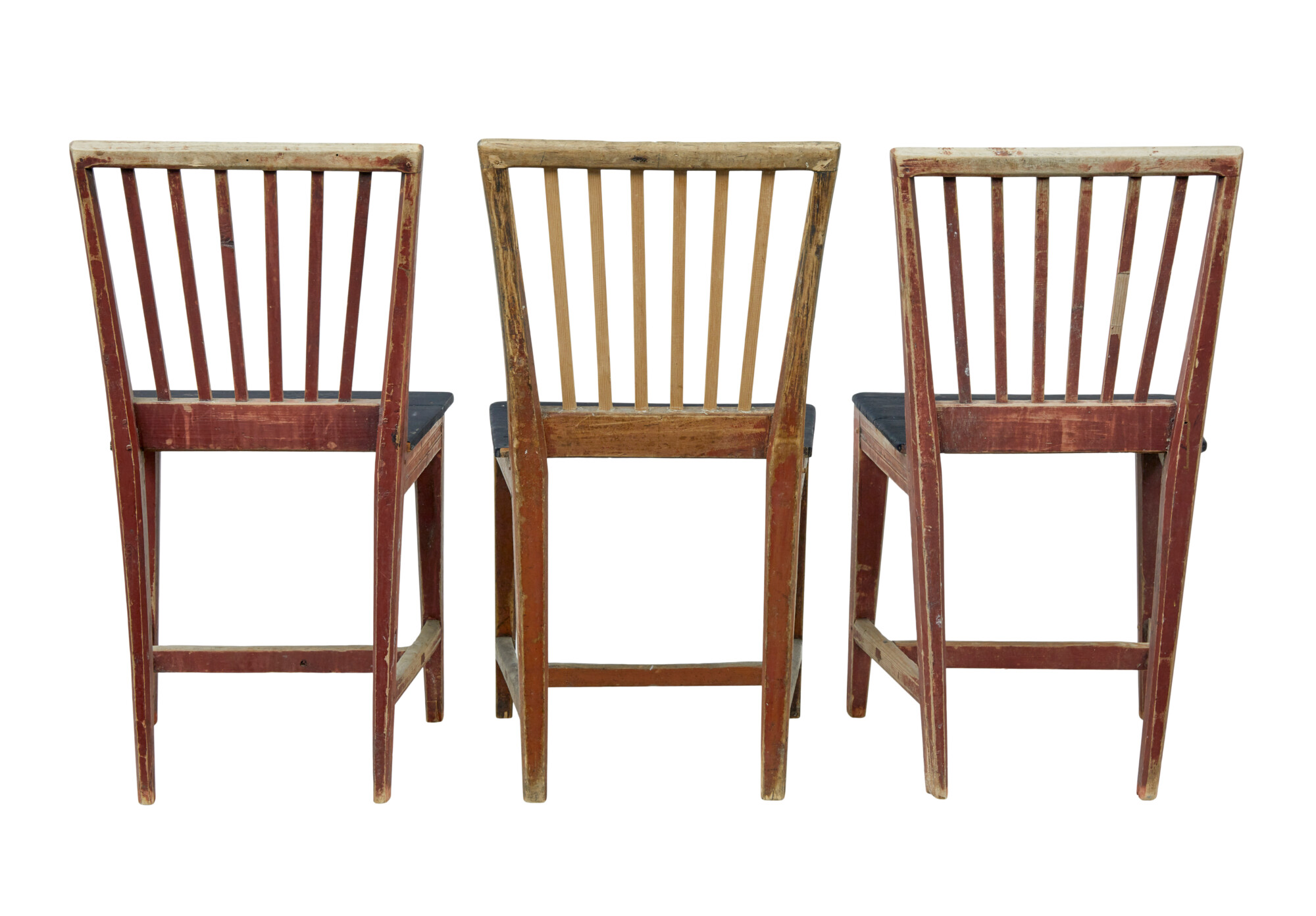 HARLEQUIN SET OF 6 19TH CENTURY PAINTED PINE DINING CHAIRS
