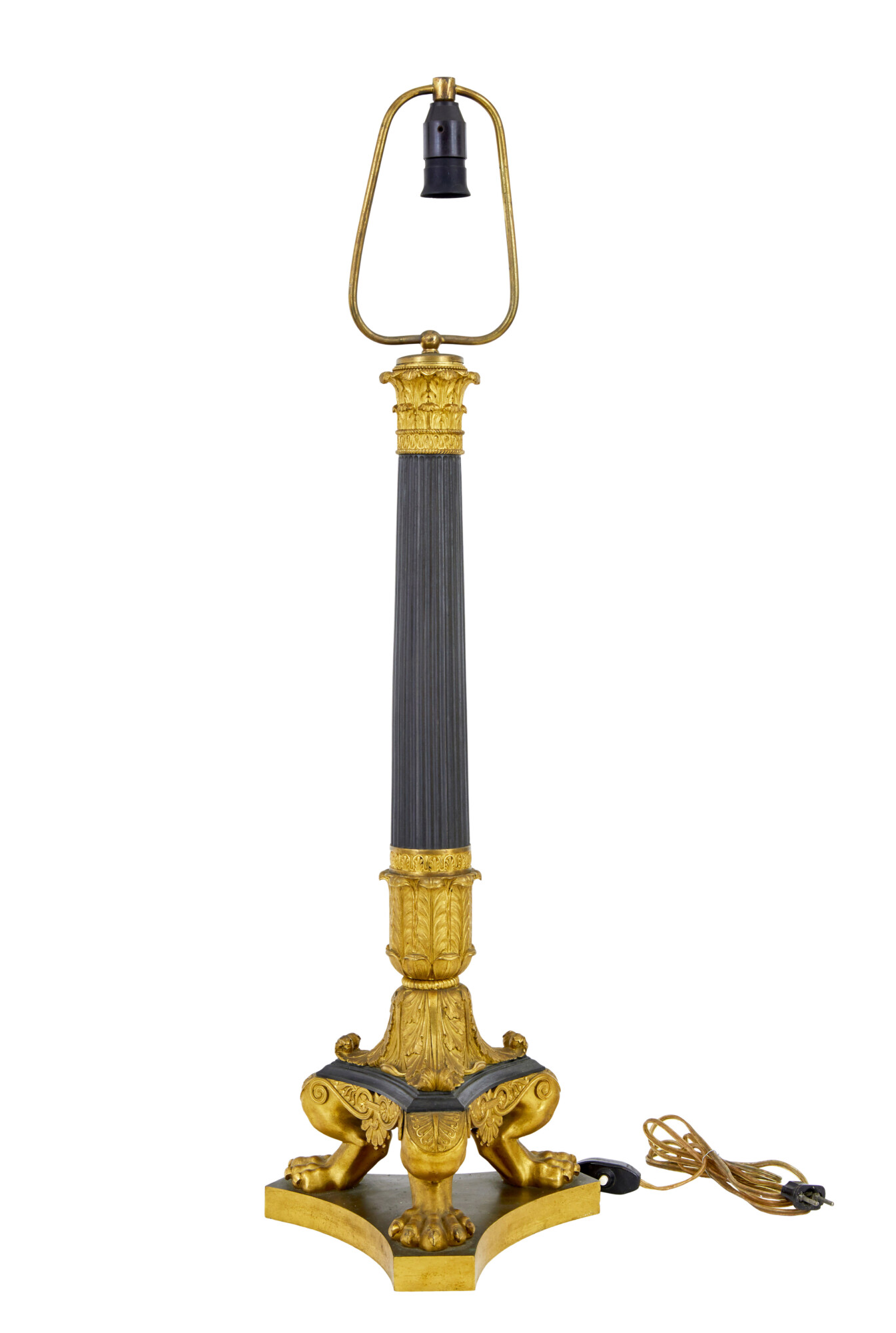 TALL 19TH CENTURY FRENCH EMPIRE BRONZE ORMOLU LAMP, CIRCA 1860.