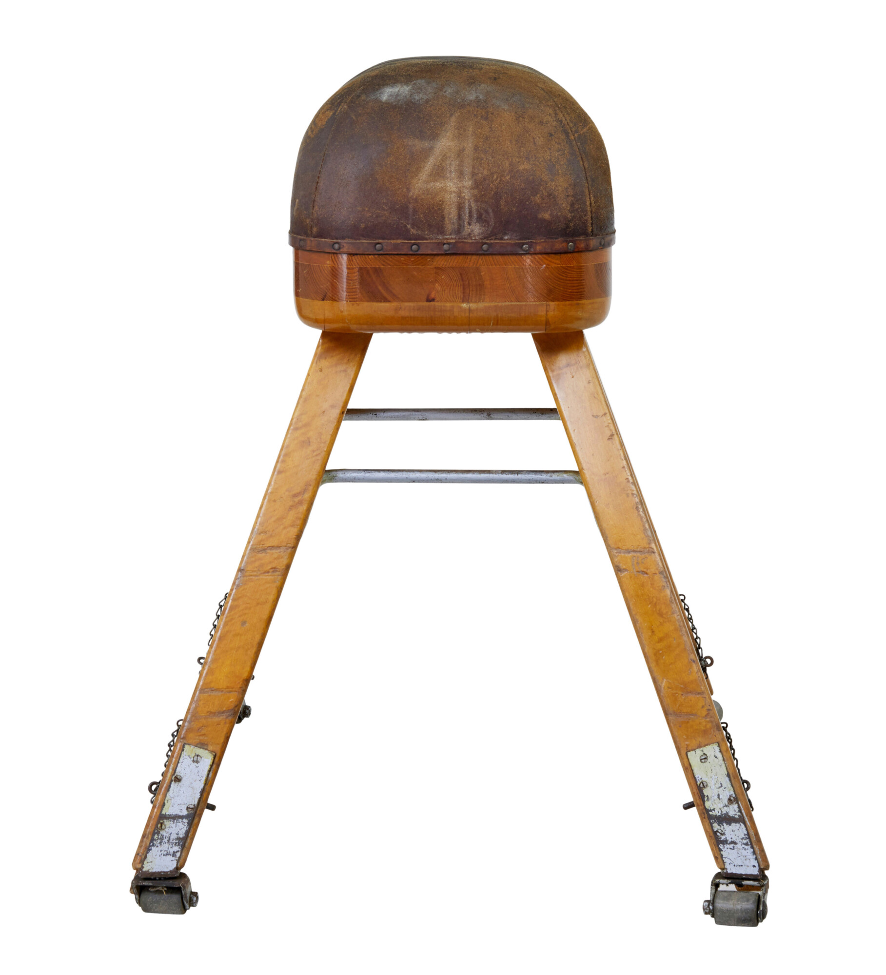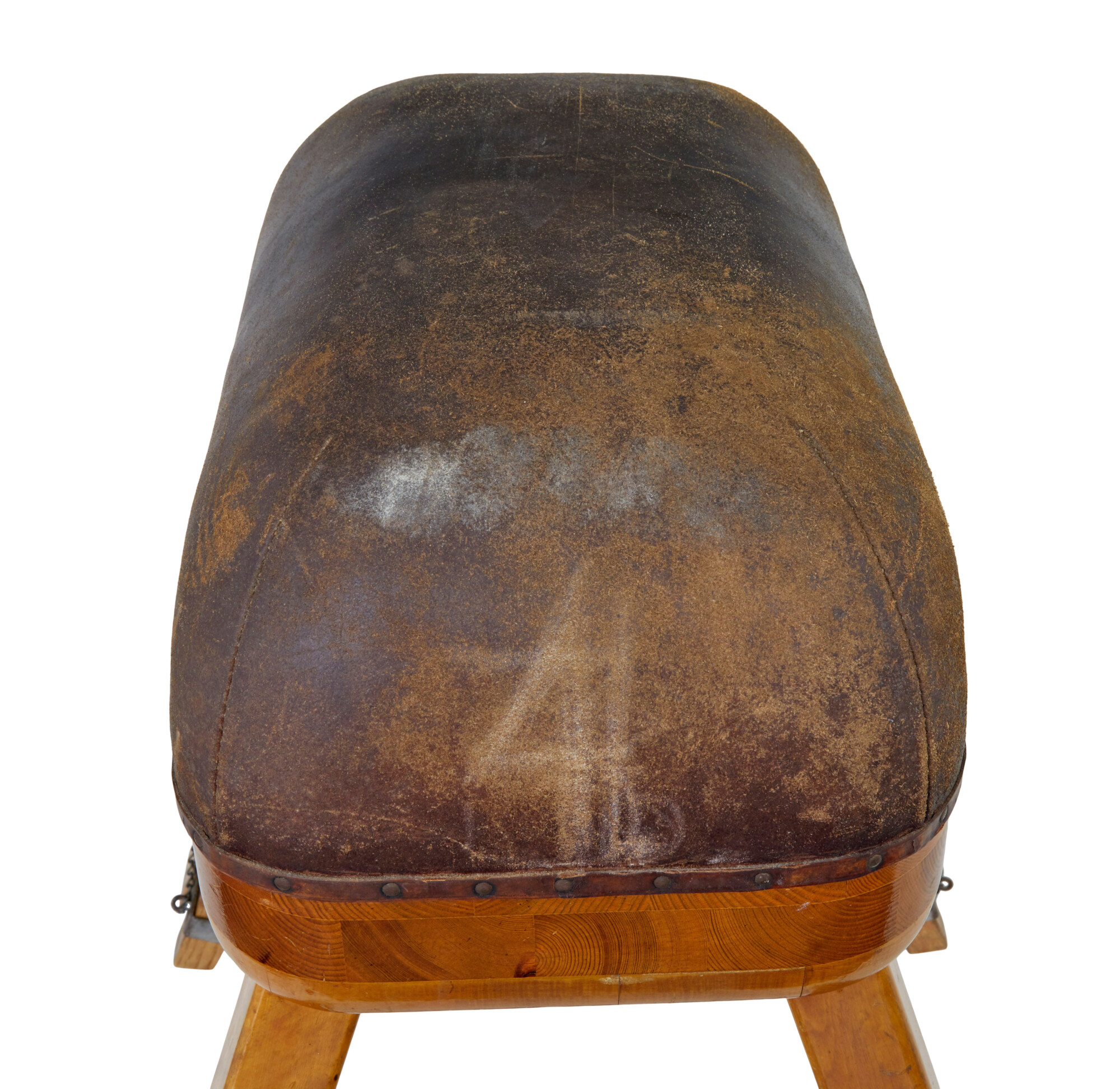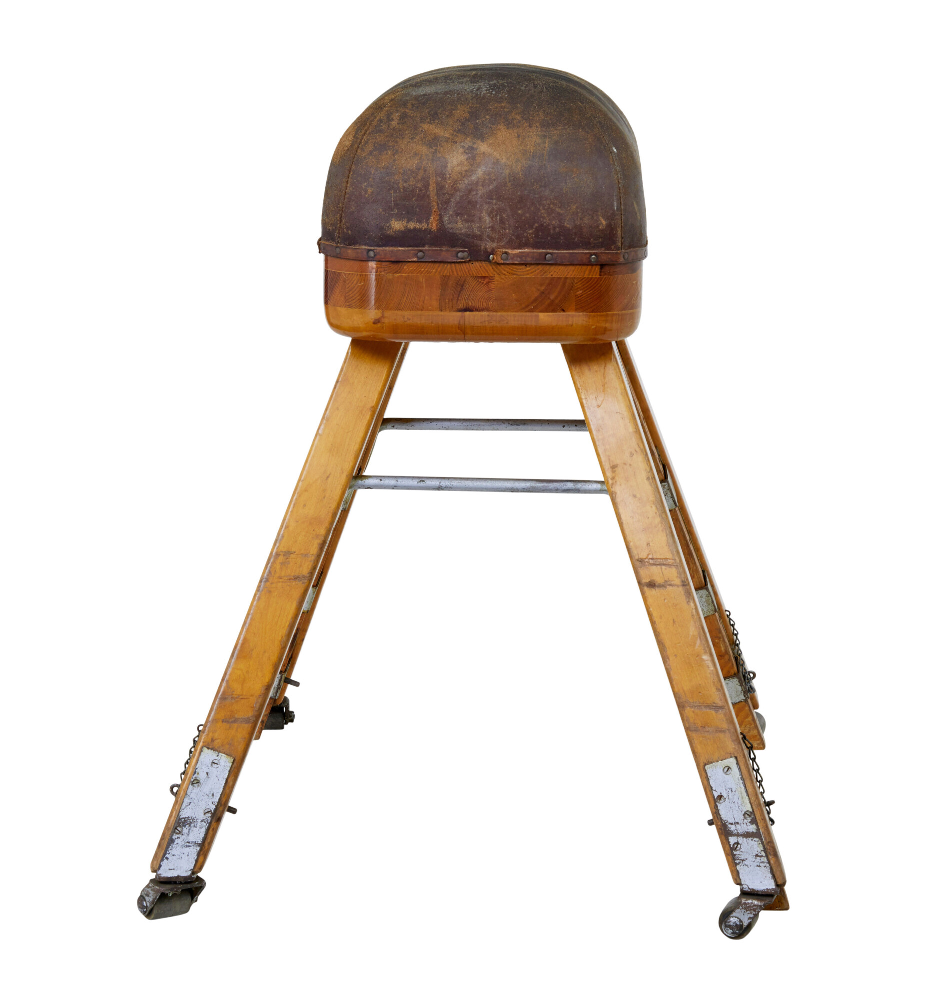 HERE WE OFFER A SWEDISH MADE GYM HORSE MADE FROM SOLID PINE. WE BELIEVE THIS IS A FULL SIZE GYM HORSE WHICH MAKES THIS A HEAVY ITEM.
