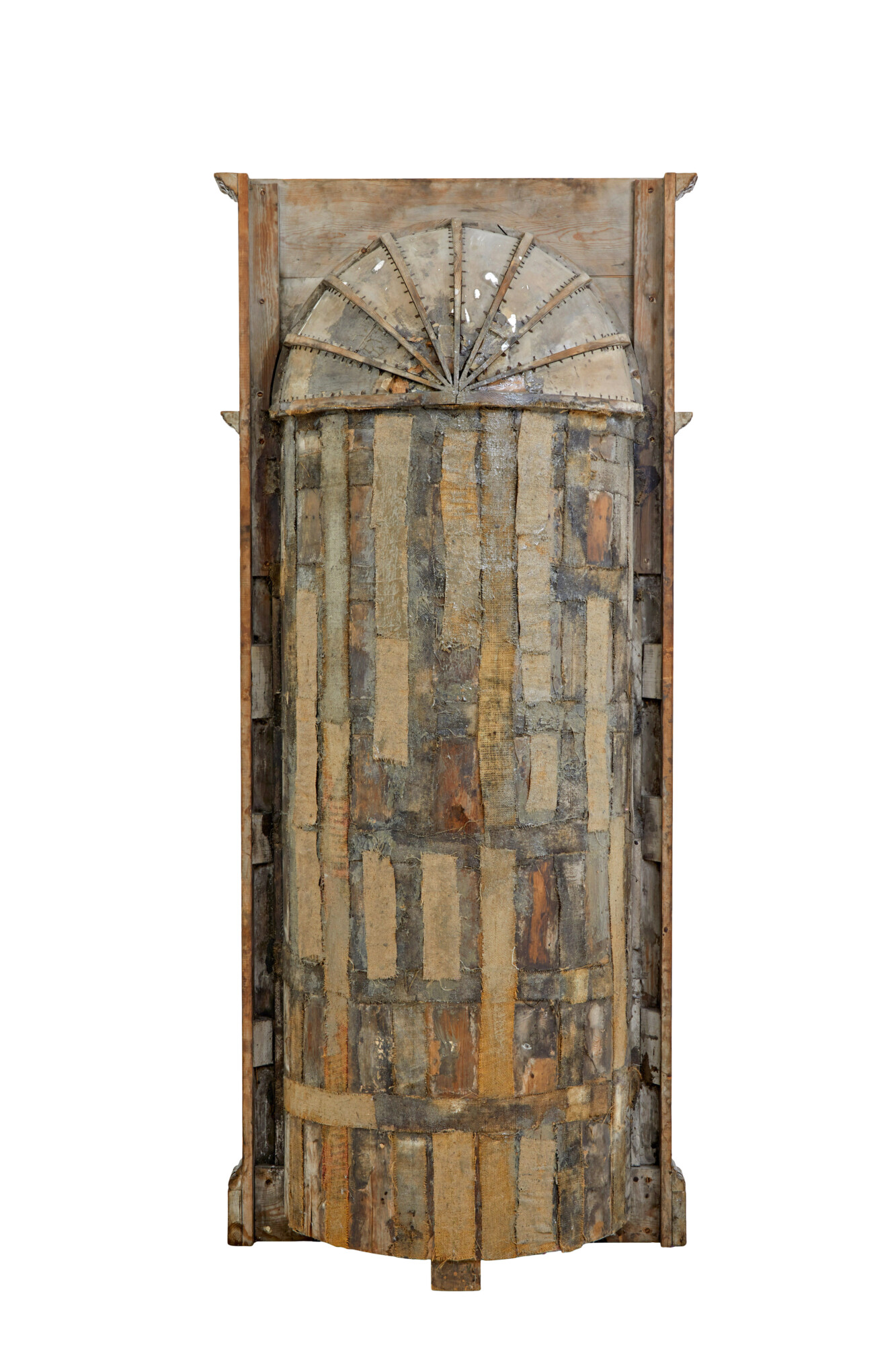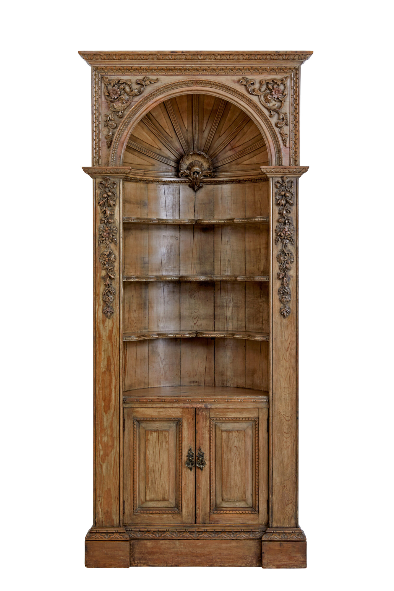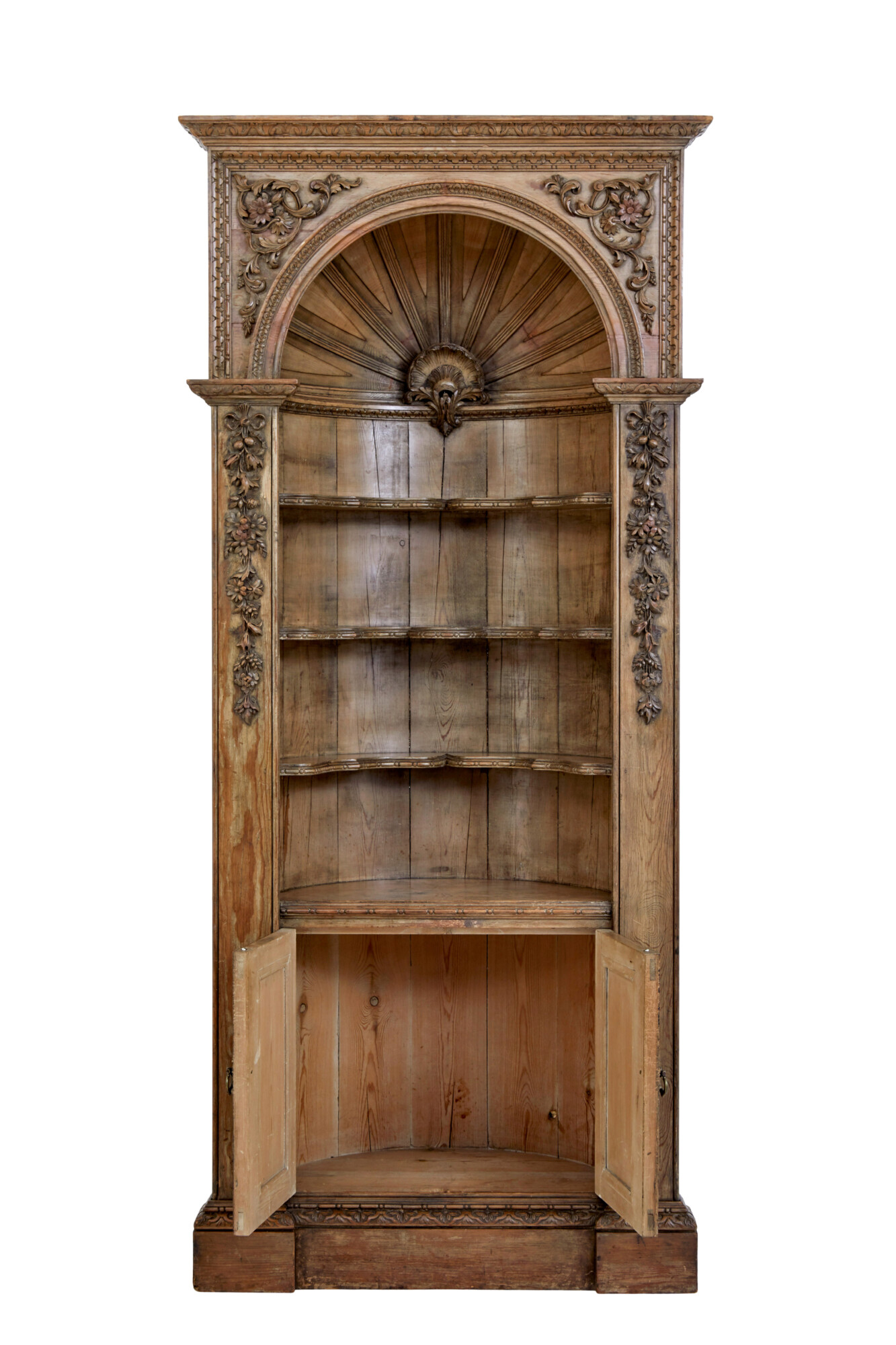 MID 18TH CENTURY CARVED PINE DOME TOP FITTED CABINET