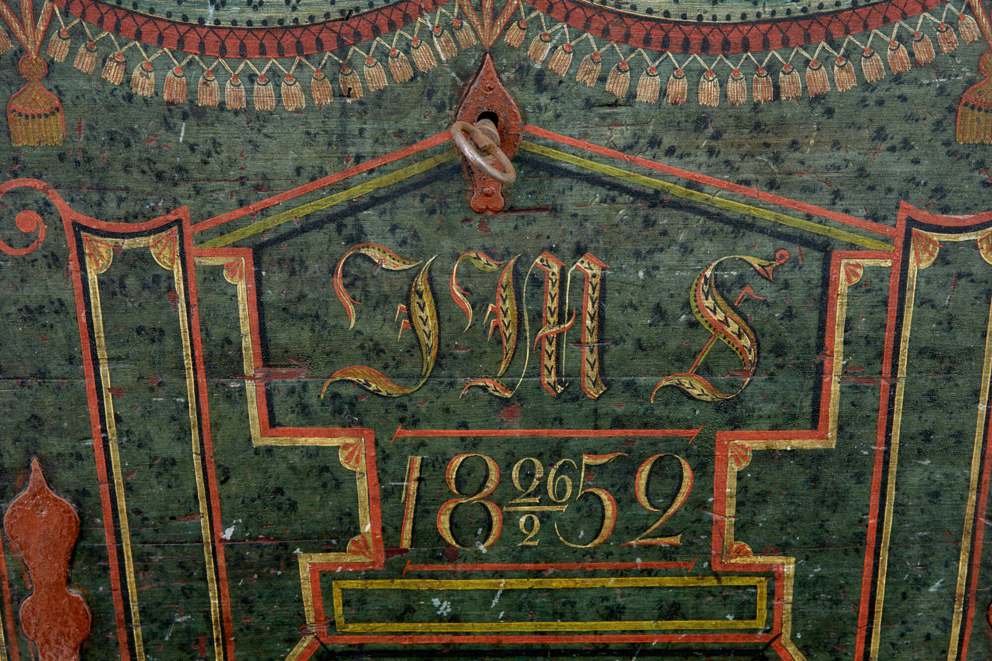 MID 19TH CENTURY HAND PAINTED SWEDISH OAK COFFER CIRCA 1852.