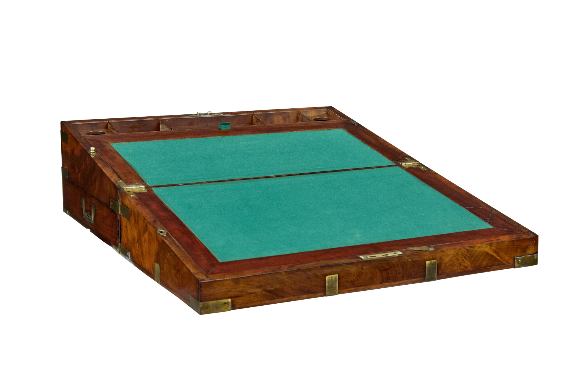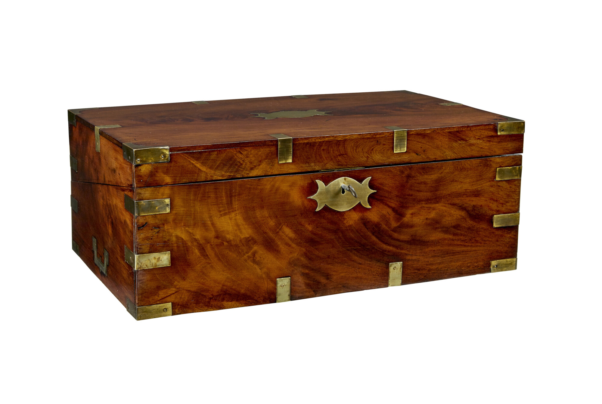 MID 19TH CENTURY MAHOGANY BRASS BOUND CAMPAIGN WRITING SLOPE CIRCA 1860.