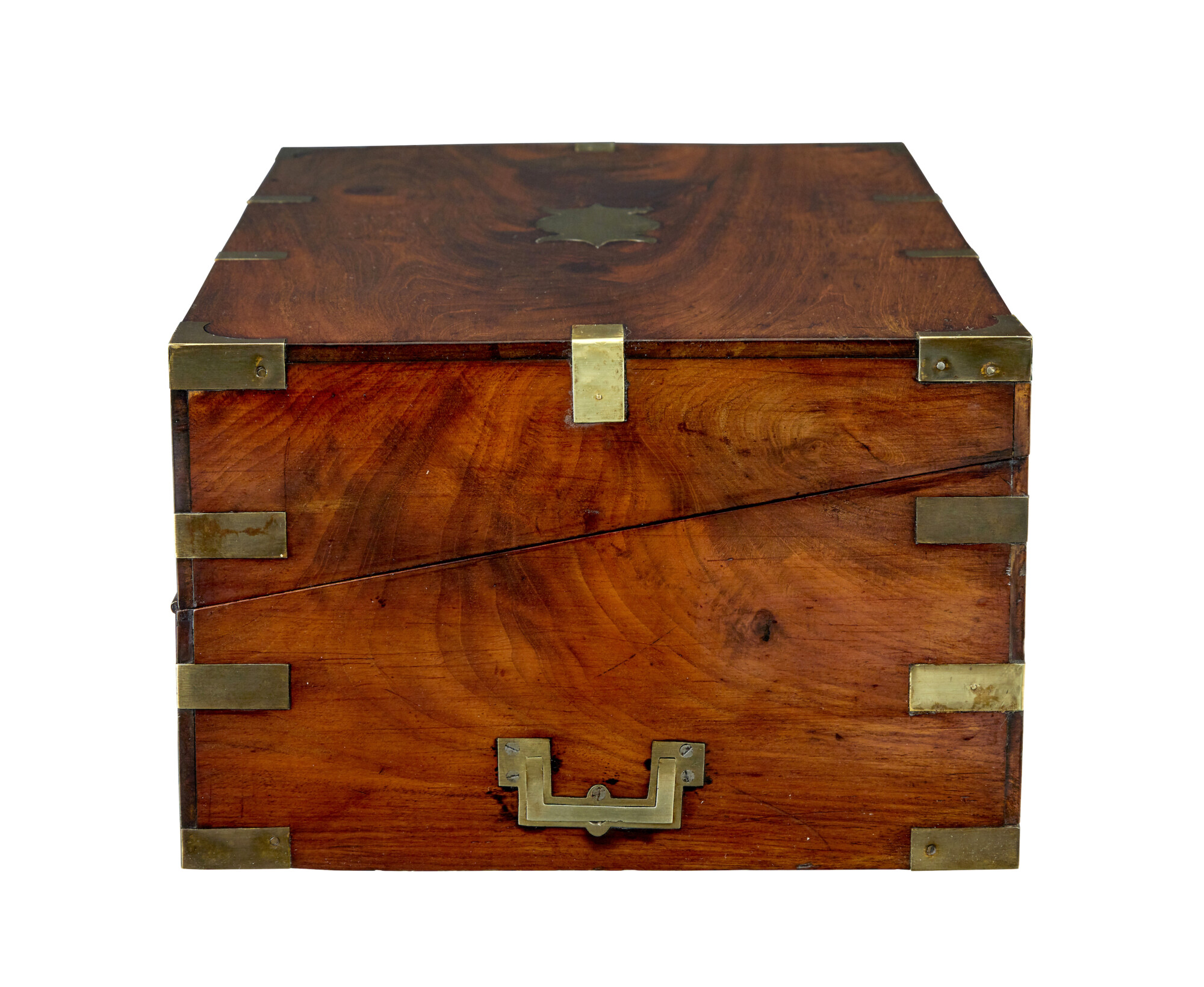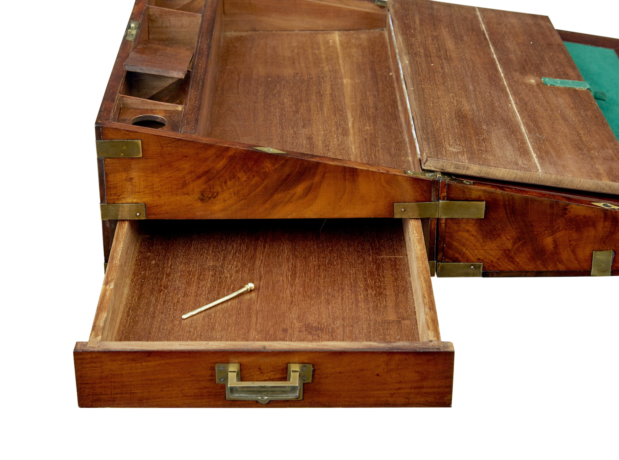 MID 19TH CENTURY MAHOGANY BRASS BOUND CAMPAIGN WRITING SLOPE