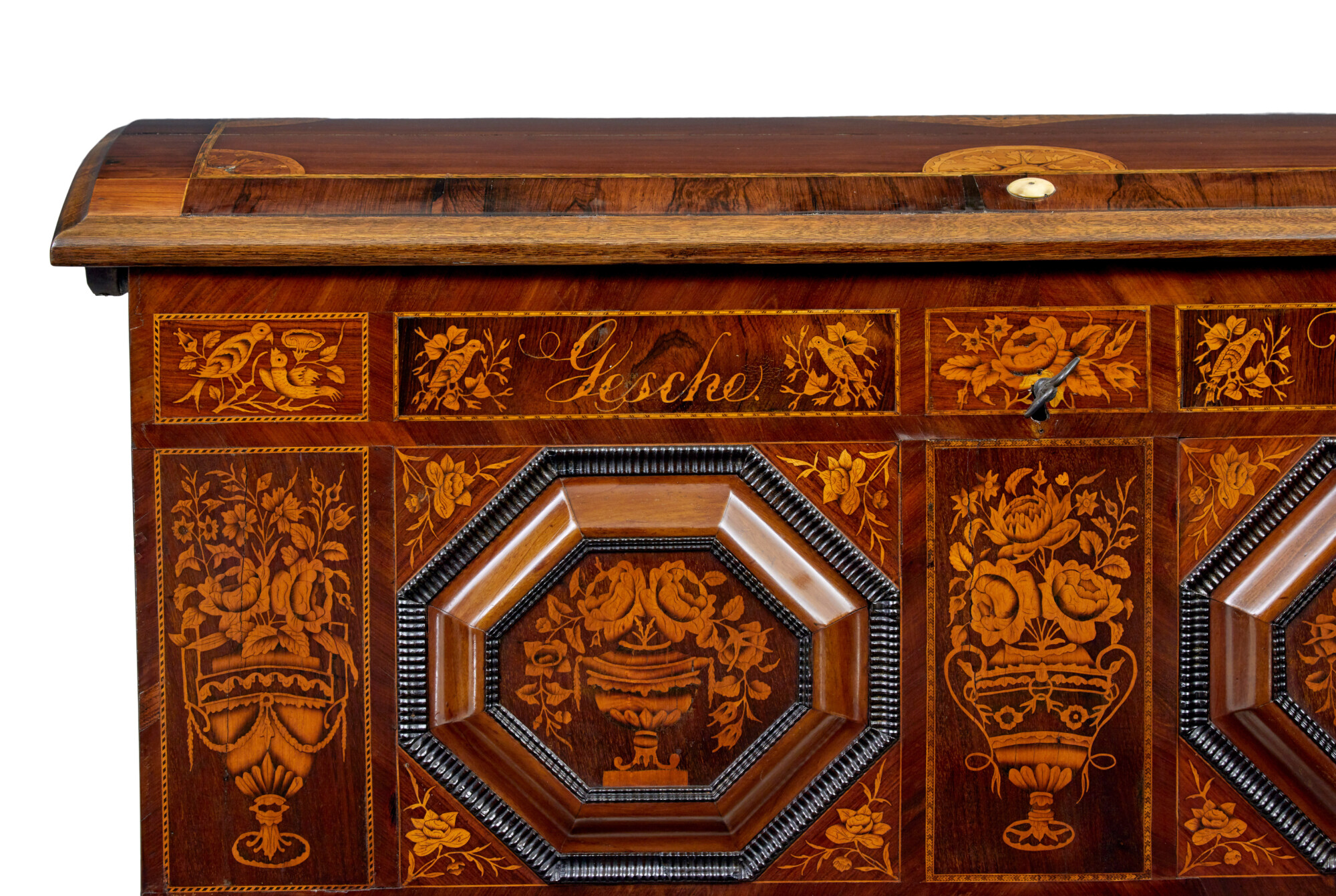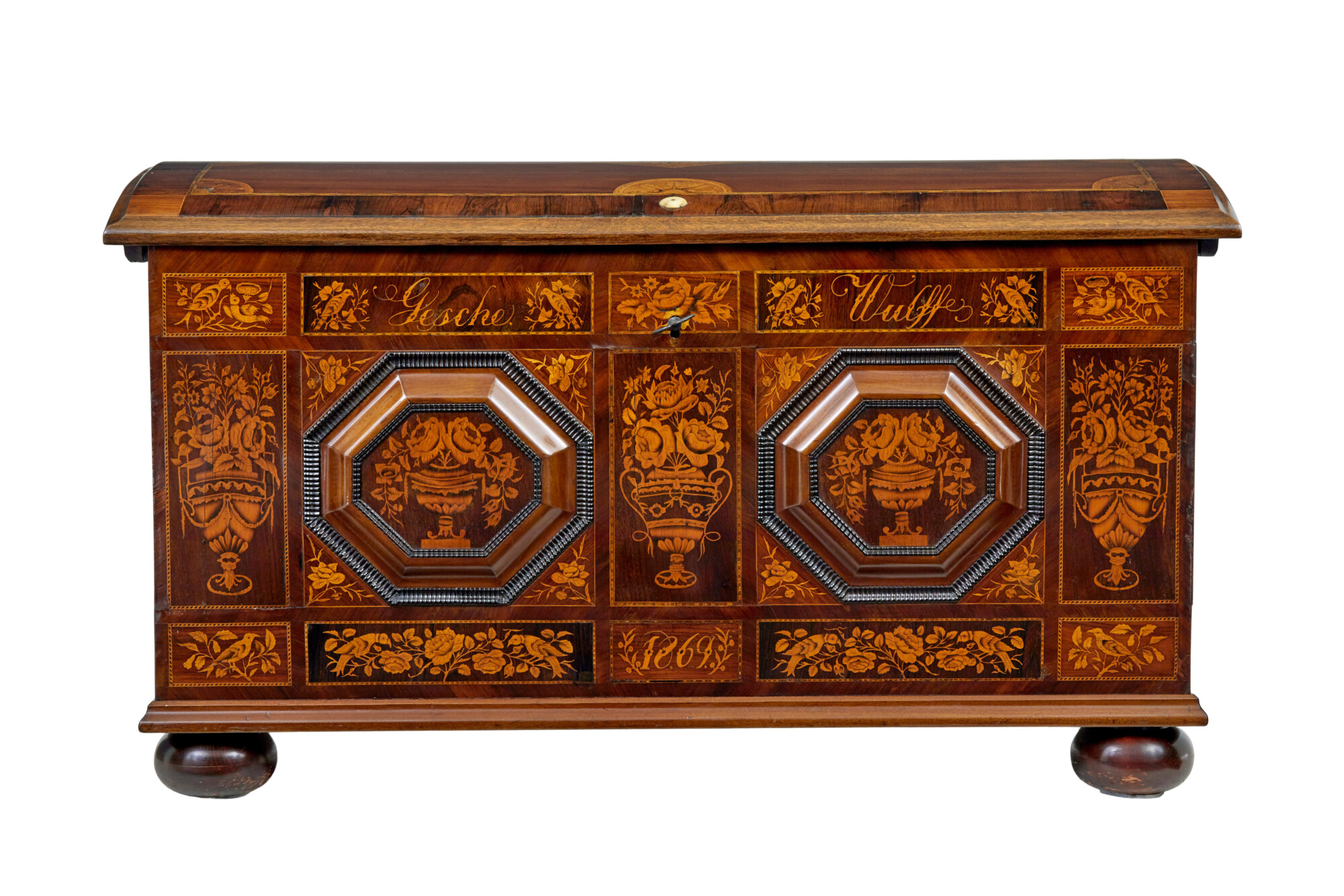 MID 19TH CENTURY PROFUSELY INLAID CONTINENTAL WALNUT DOME COFFER - Debenham Antiques