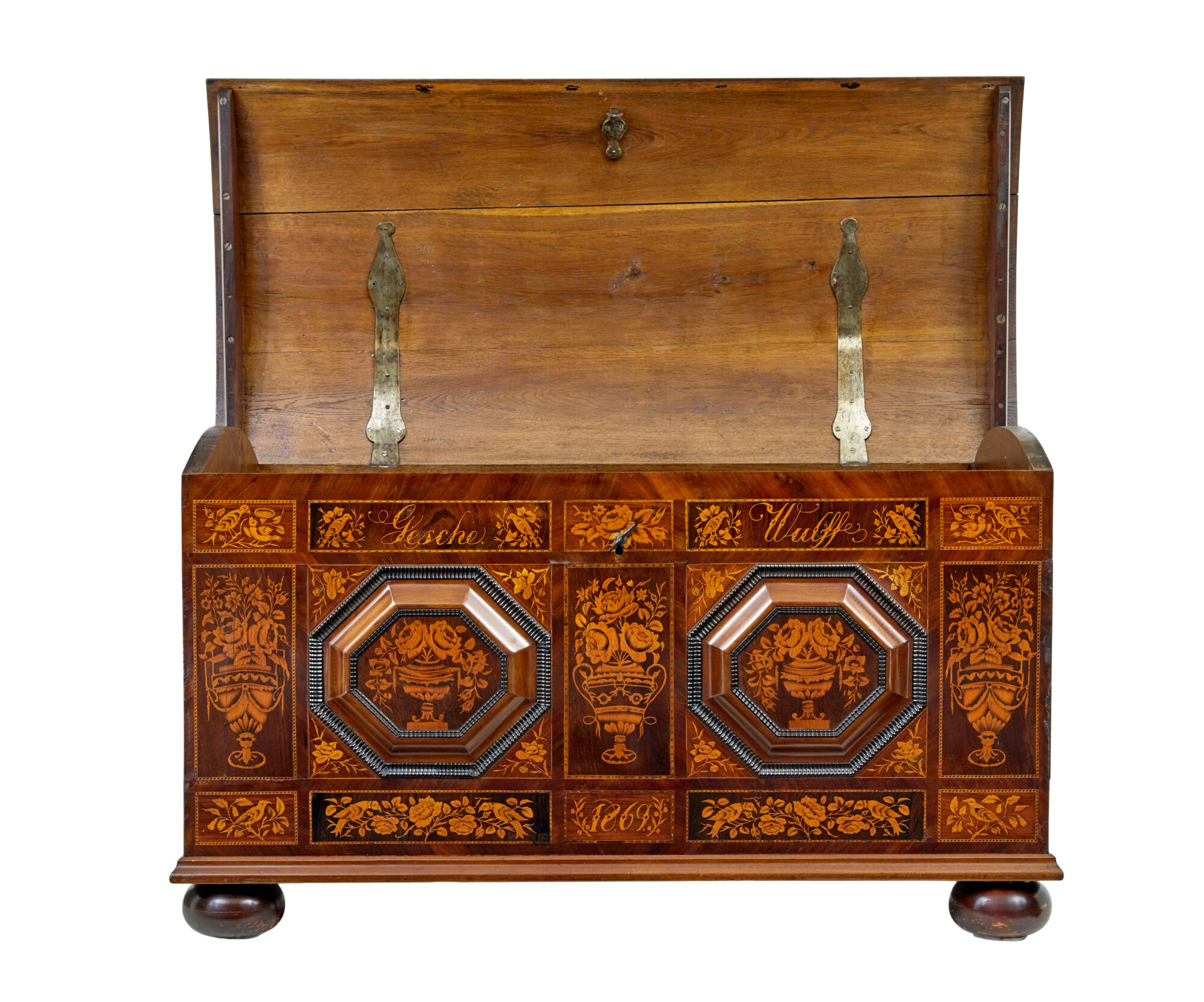 MID 19TH CENTURY PROFUSELY INLAID CONTINENTAL WALNUT DOME COFFER