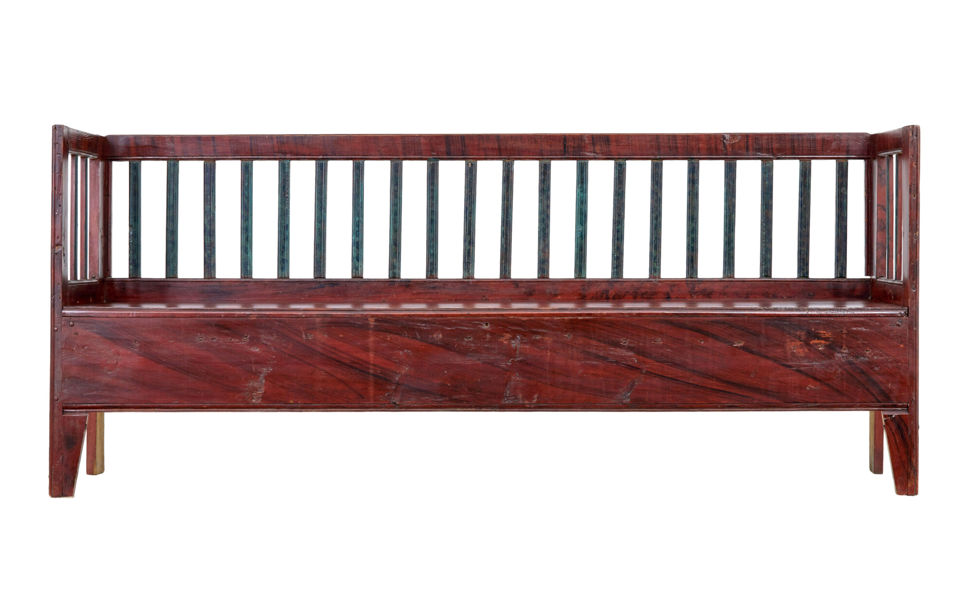 MID 19TH CENTURY RUSTIC SWEDISH PAINTED PINE BENCH CIRCA 1860.