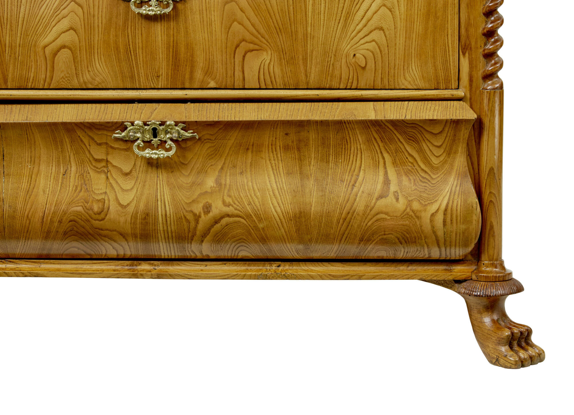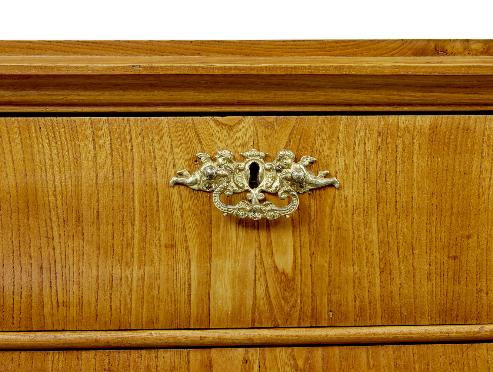 MID 19TH CENTURY SWEDISH CARVED ELM CHEST OF DRAWERS