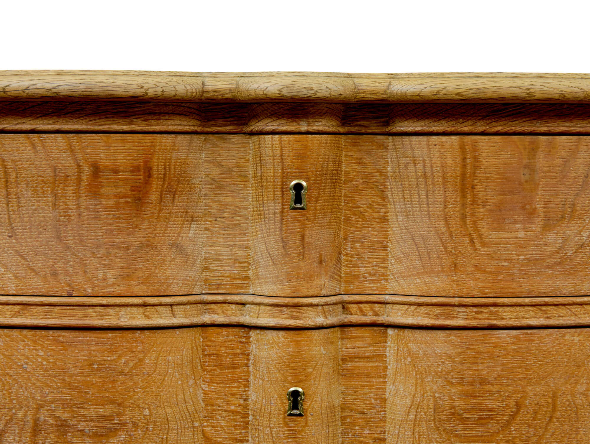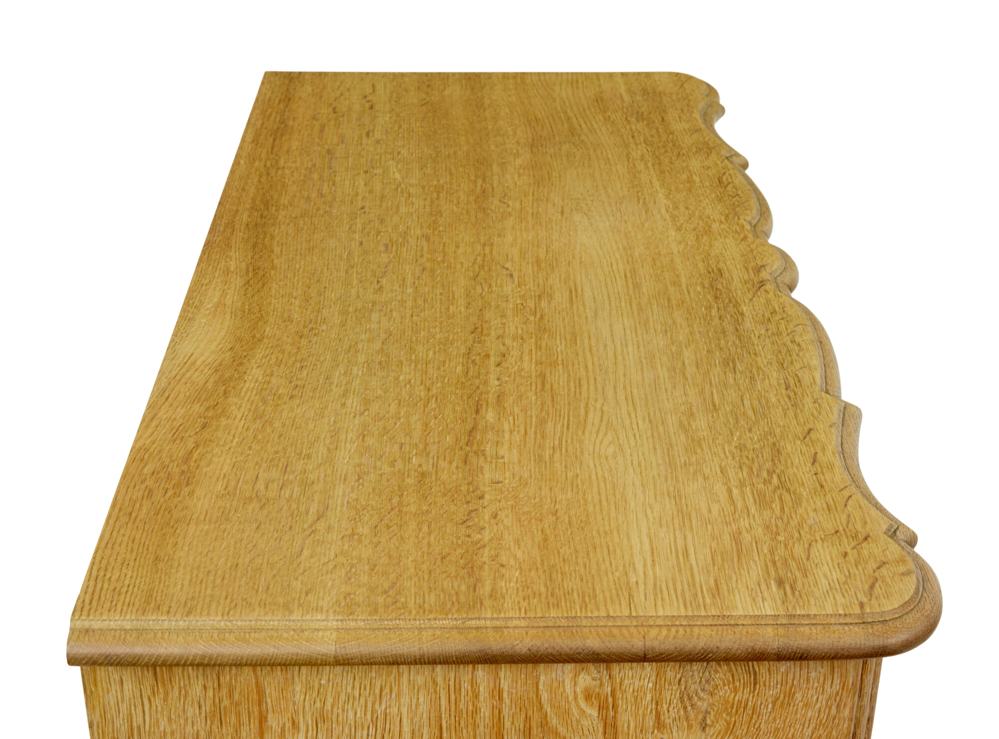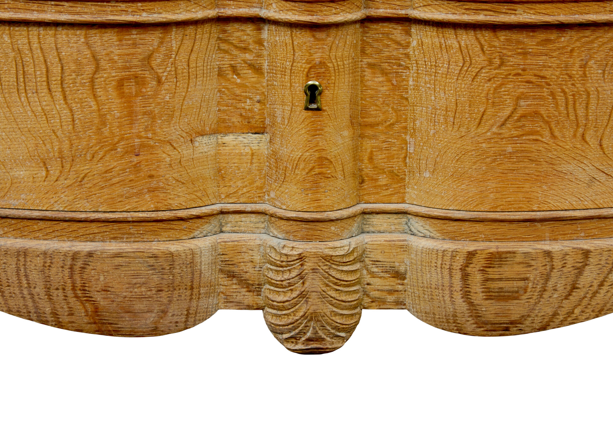 MID CENTURY BAROQUE REVIVAL SOLID OAK CHEST OF DRAWERS CIRCA 1950.
