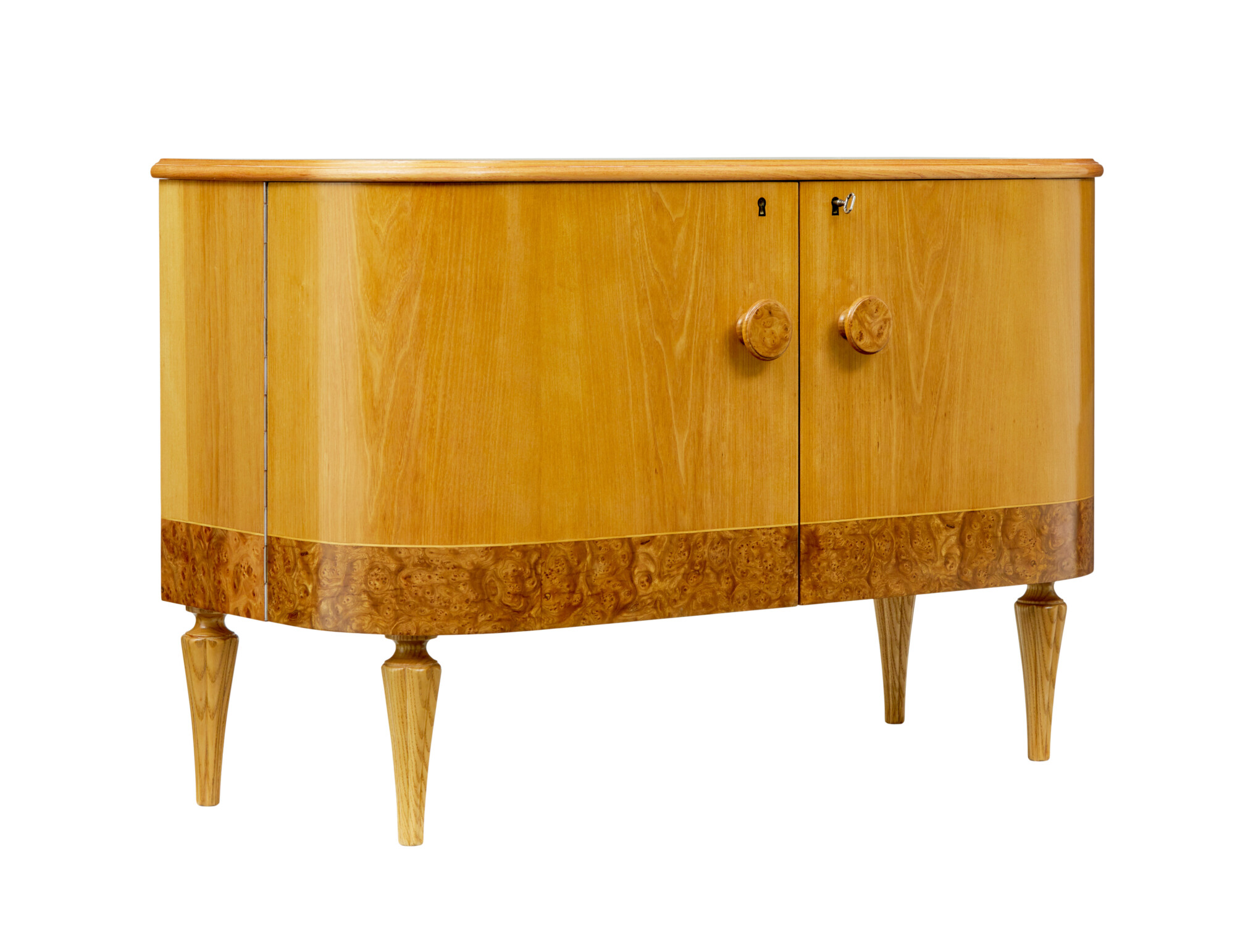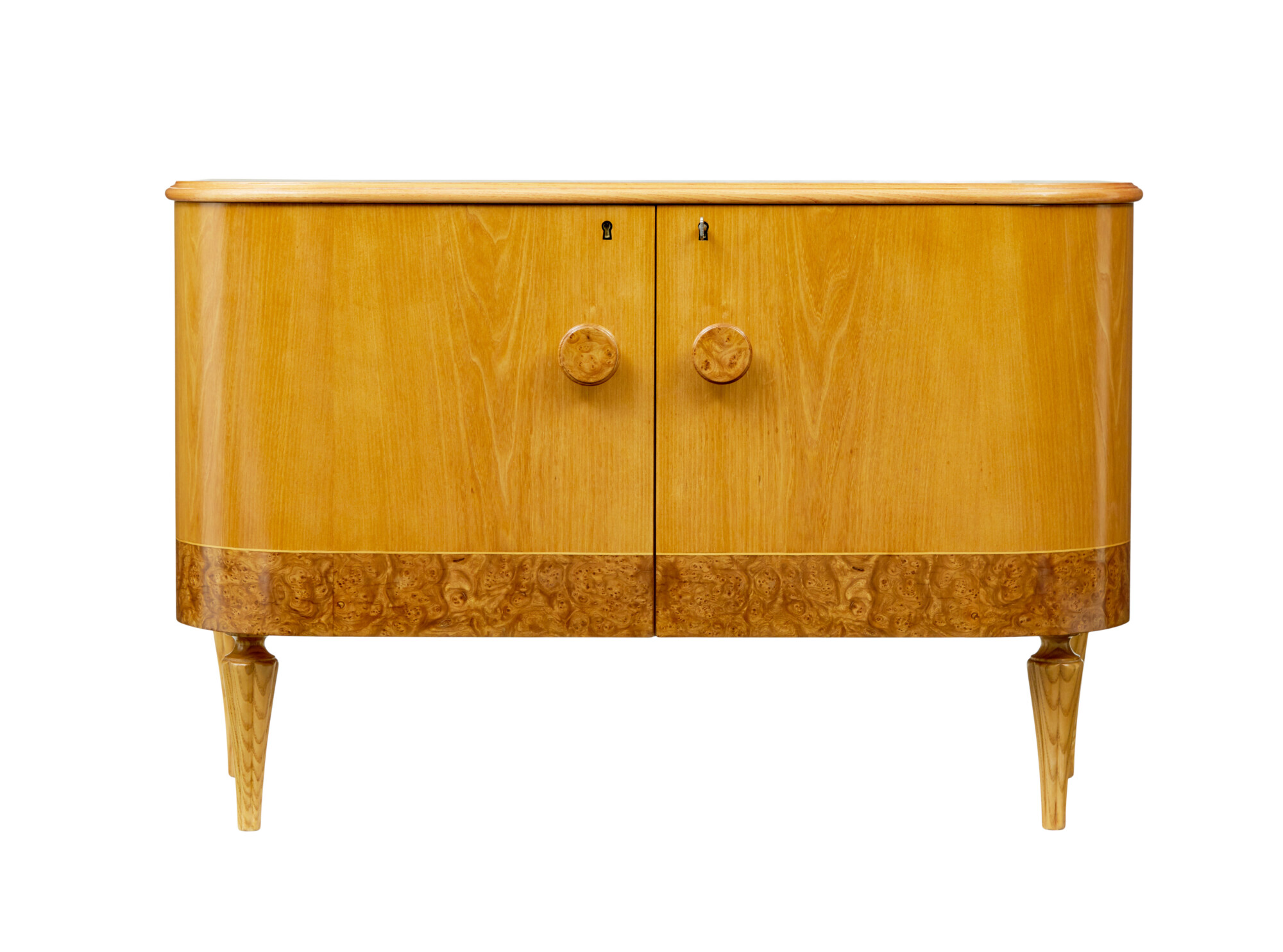 MID CENTURY ELM AND BURR SMALL SIDEBOARD BY TINGSTROMS