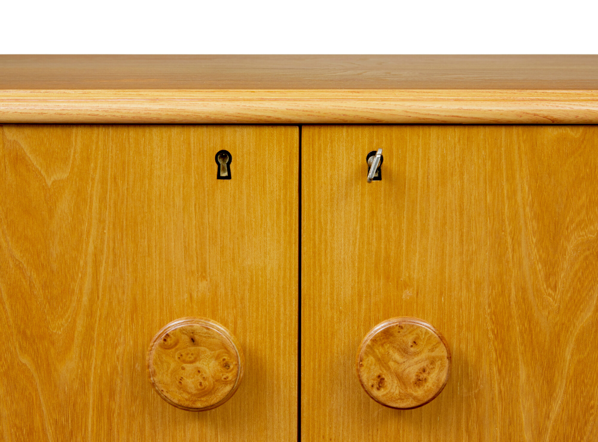 MID CENTURY ELM AND BURR SMALL SIDEBOARD BY TINGSTROMS CIRCA 1960.