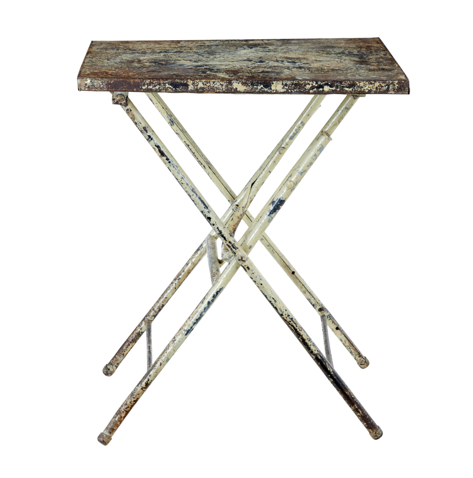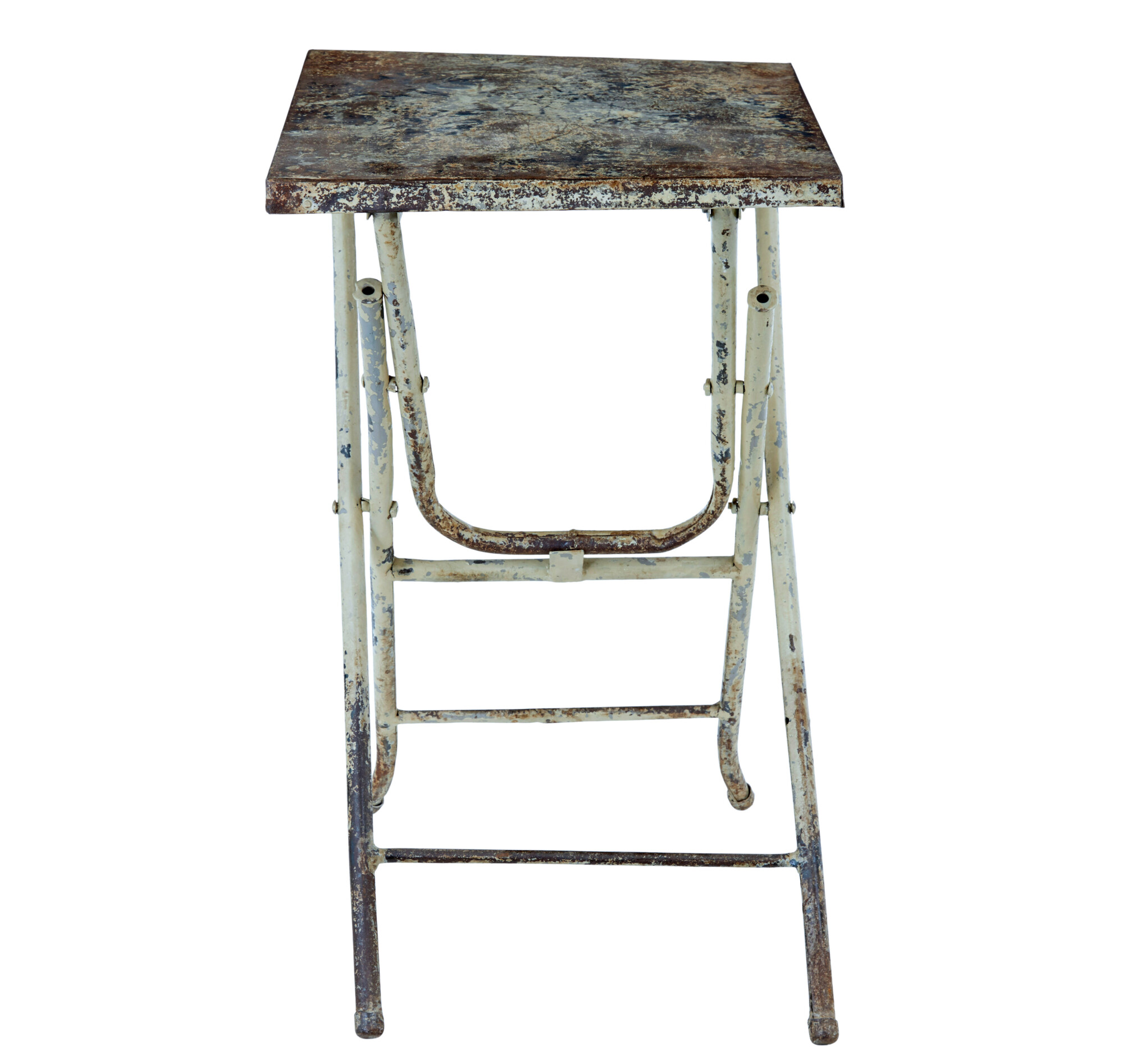 PRACTICAL PIECE OF EVERYDAY FURNITURE. METAL TABLE THAT FOLDS AWAY WHEN NOT IN USE. MAKES AN IDEAL TABLE FOR THE GARDEN ROOM, OR AS A LAMP TABLE TABLE IN THAT MODERN APARTMENT.