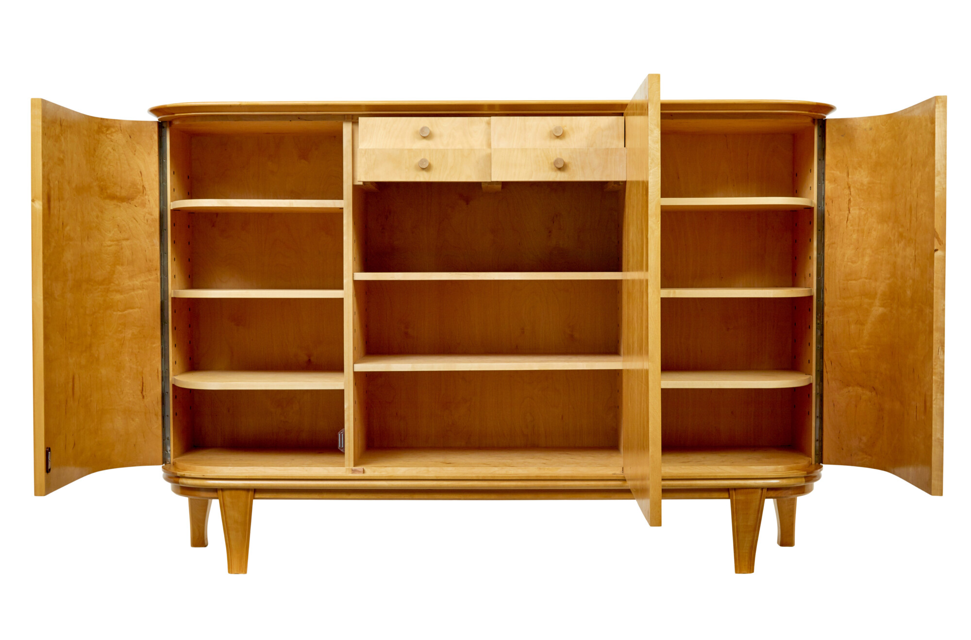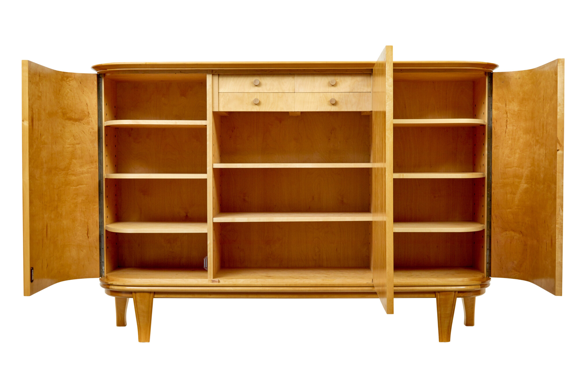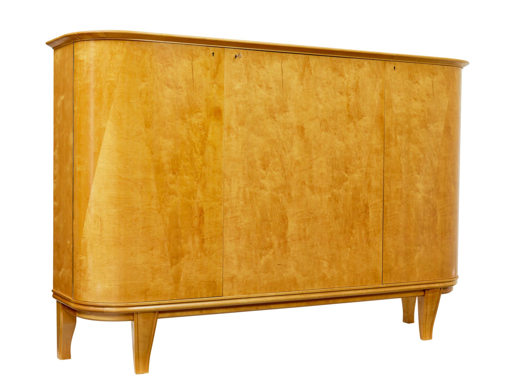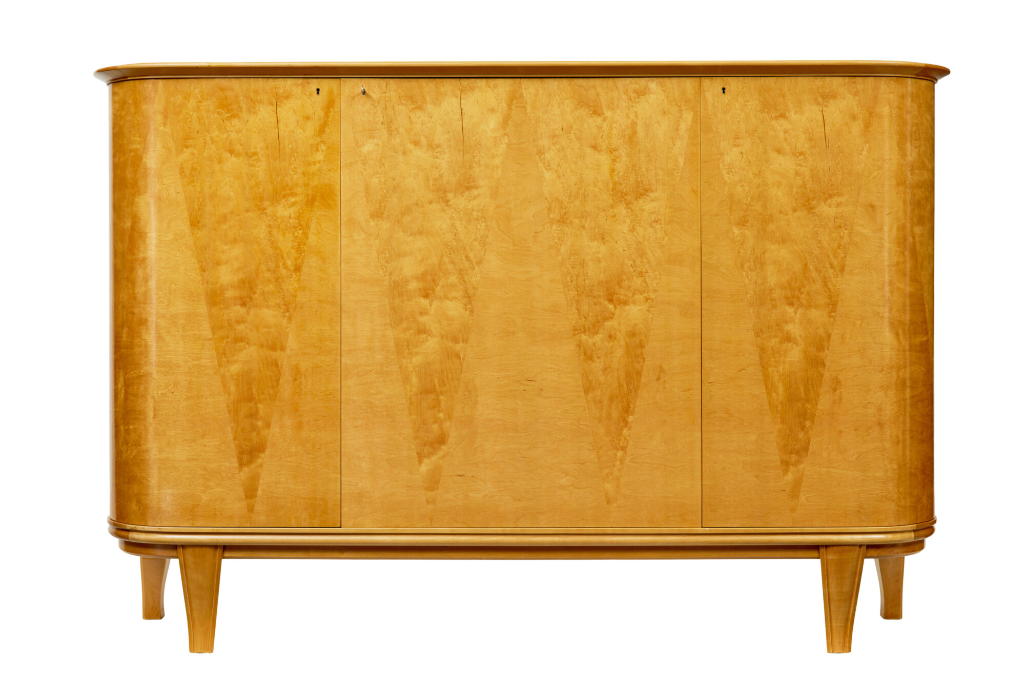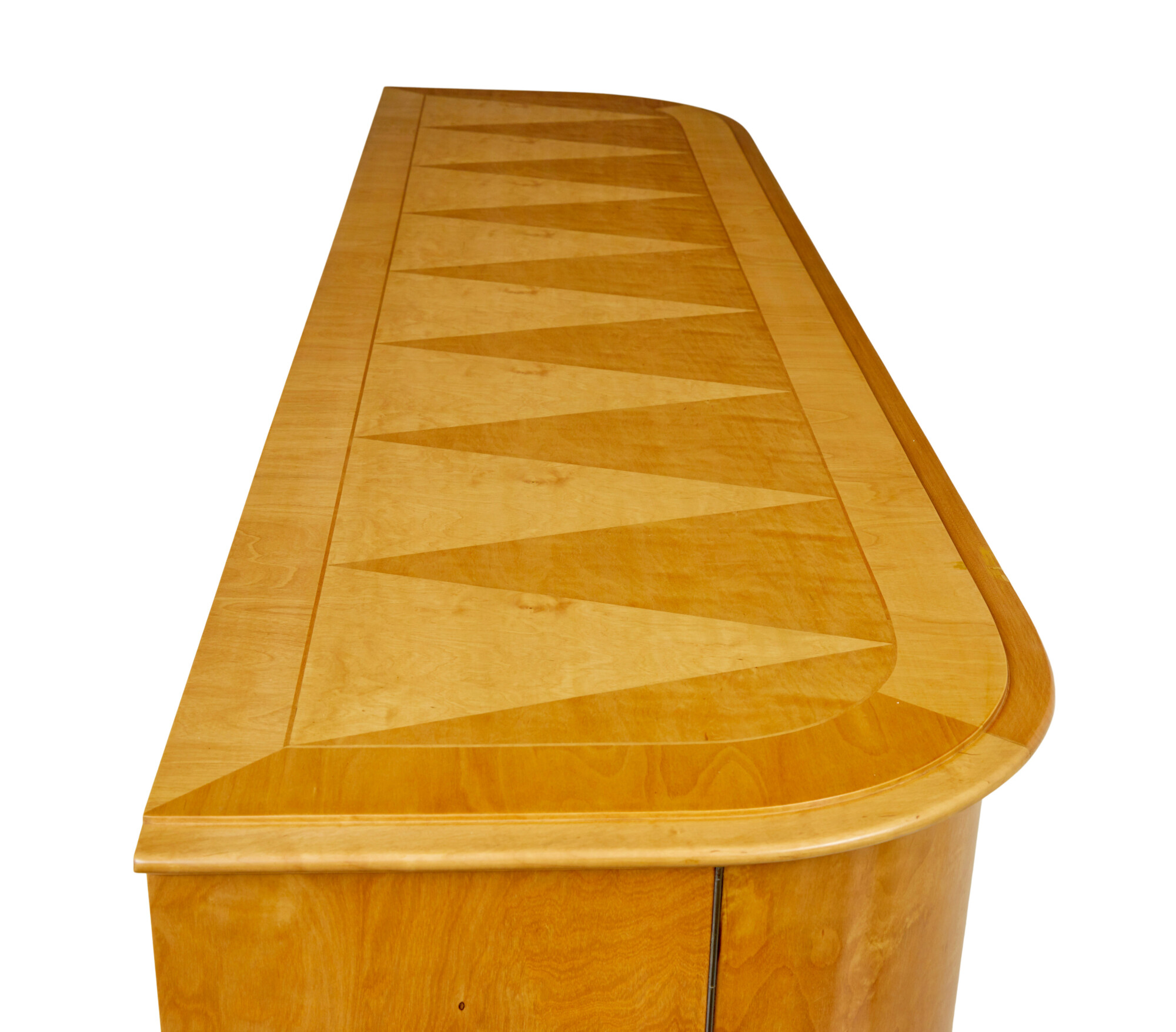 MID CENTURY SCANDINAVIAN BIRCH INLAID SHAPED SIDEBOARD CIRCA 1950.