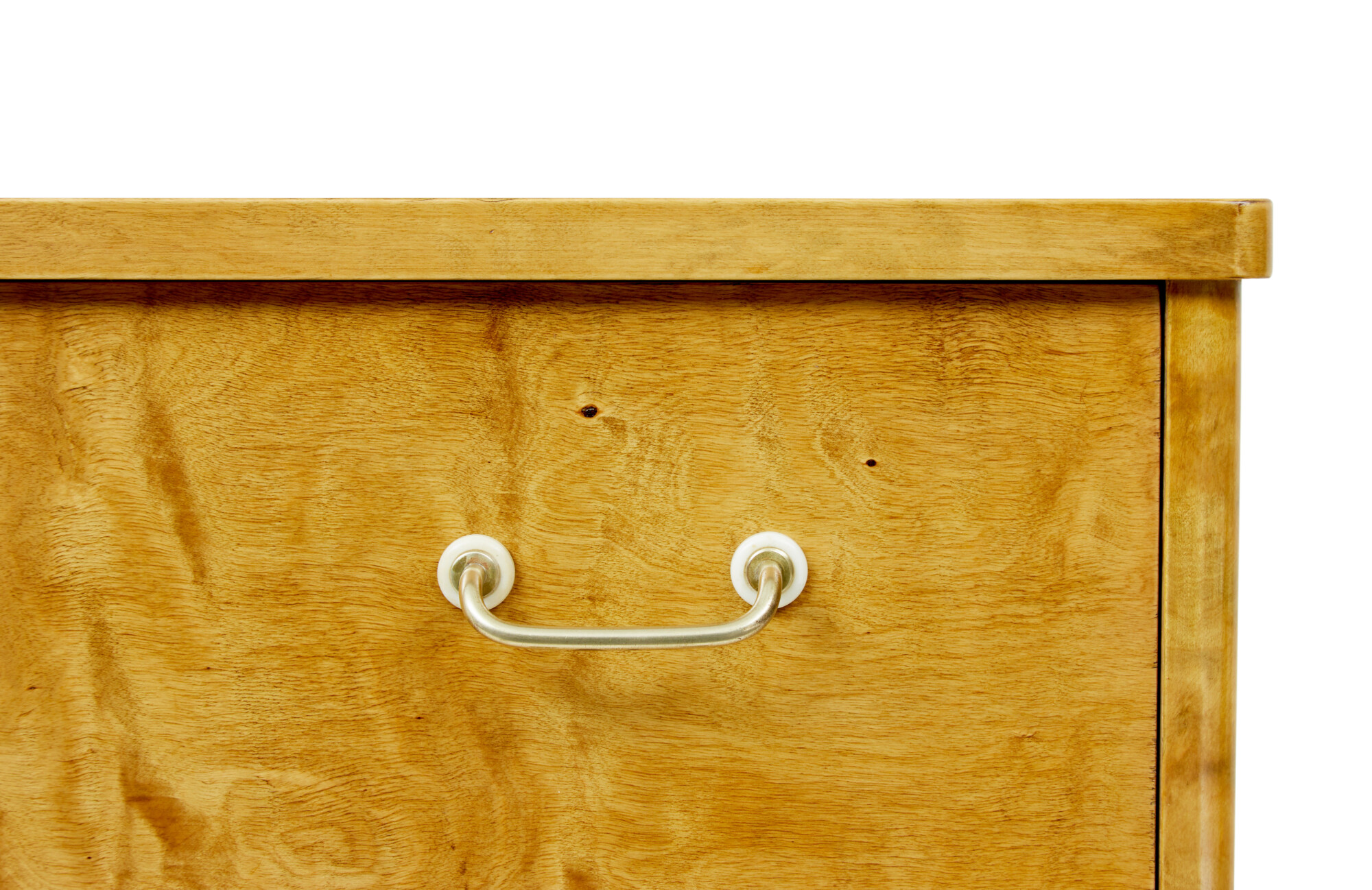 MID CENTURY SCANDINAVIAN TIGER BIRCH CHEST OF DRAWERS CIRCA 1950.