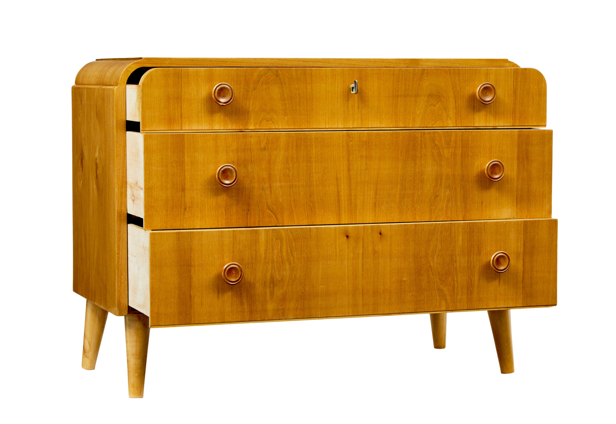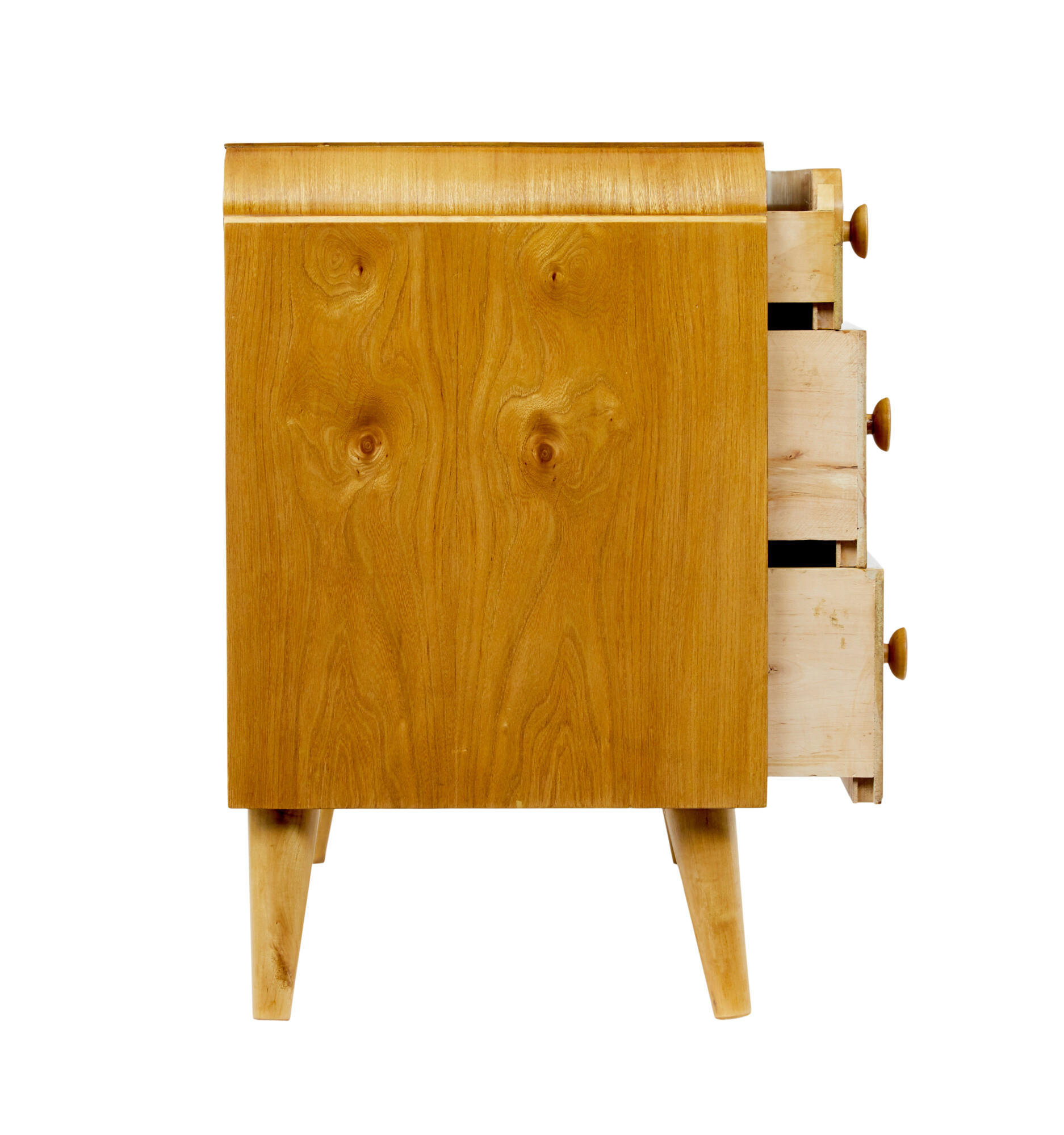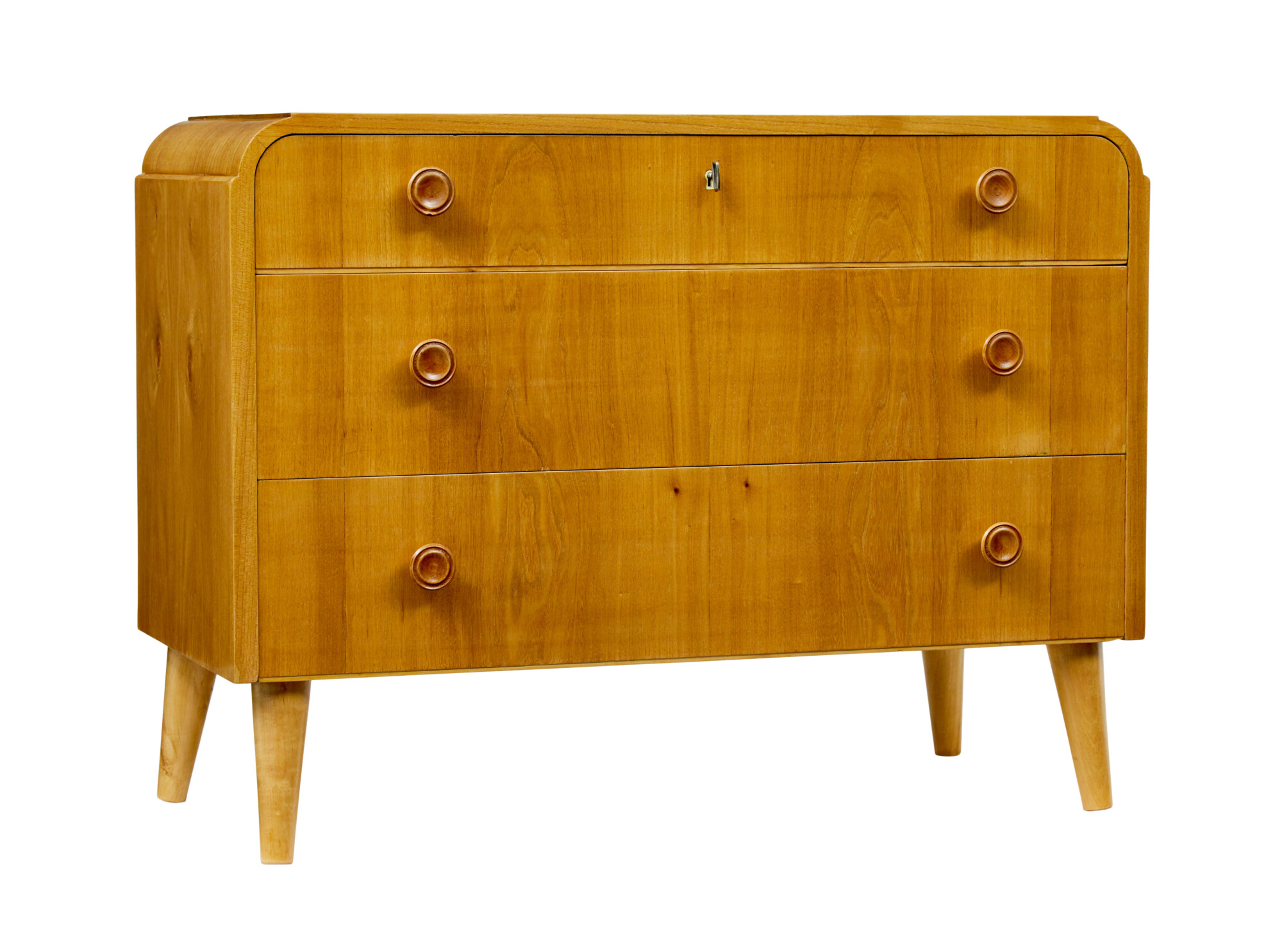 MID CENTURY SWEDISH ELM CHEST OF DRAWERS CIRCA 1940.