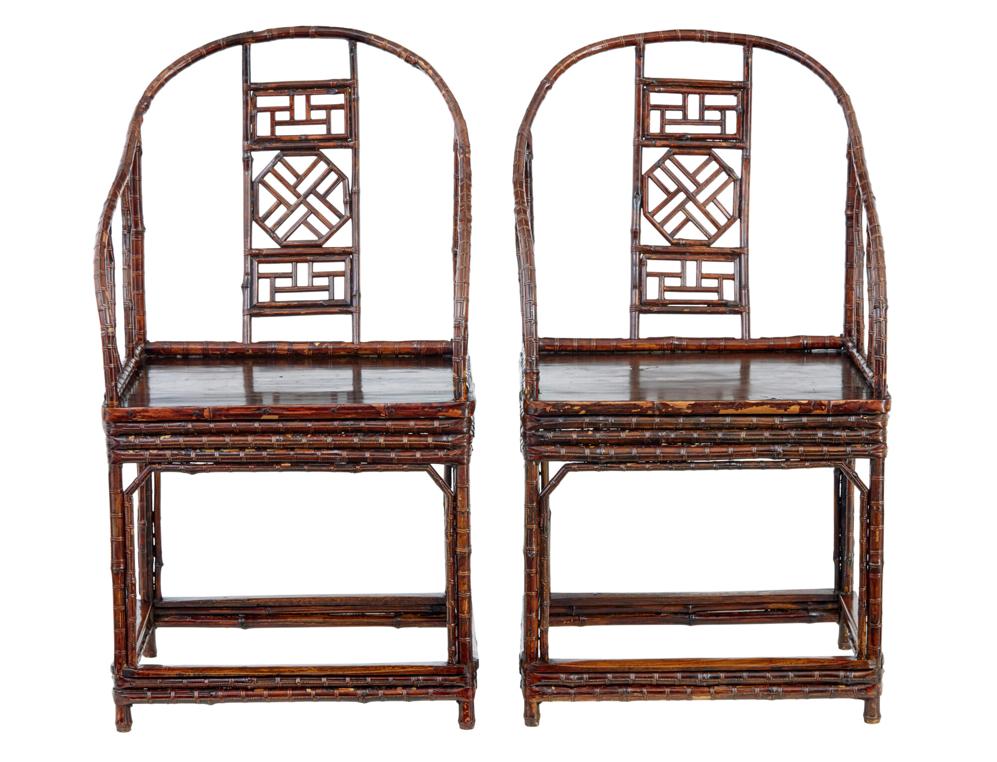 PAIR OF 19TH CENTURY BAMBOO CANEWORK CHINESE CHAIRS