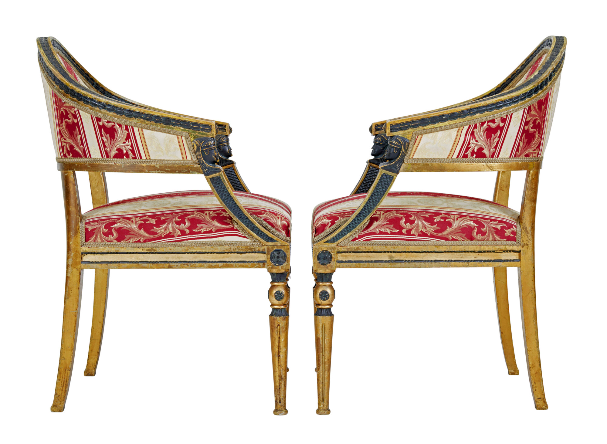 PAIR OF 19TH CENTURY SWEDISH GILT AND EBONISED ARMCHAIRS CIRCA 1860.