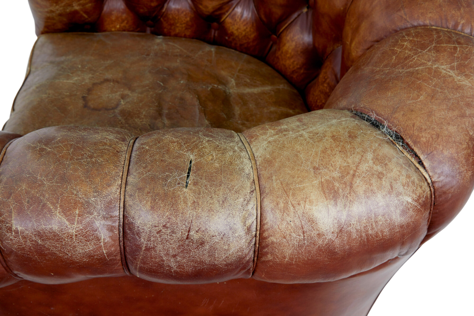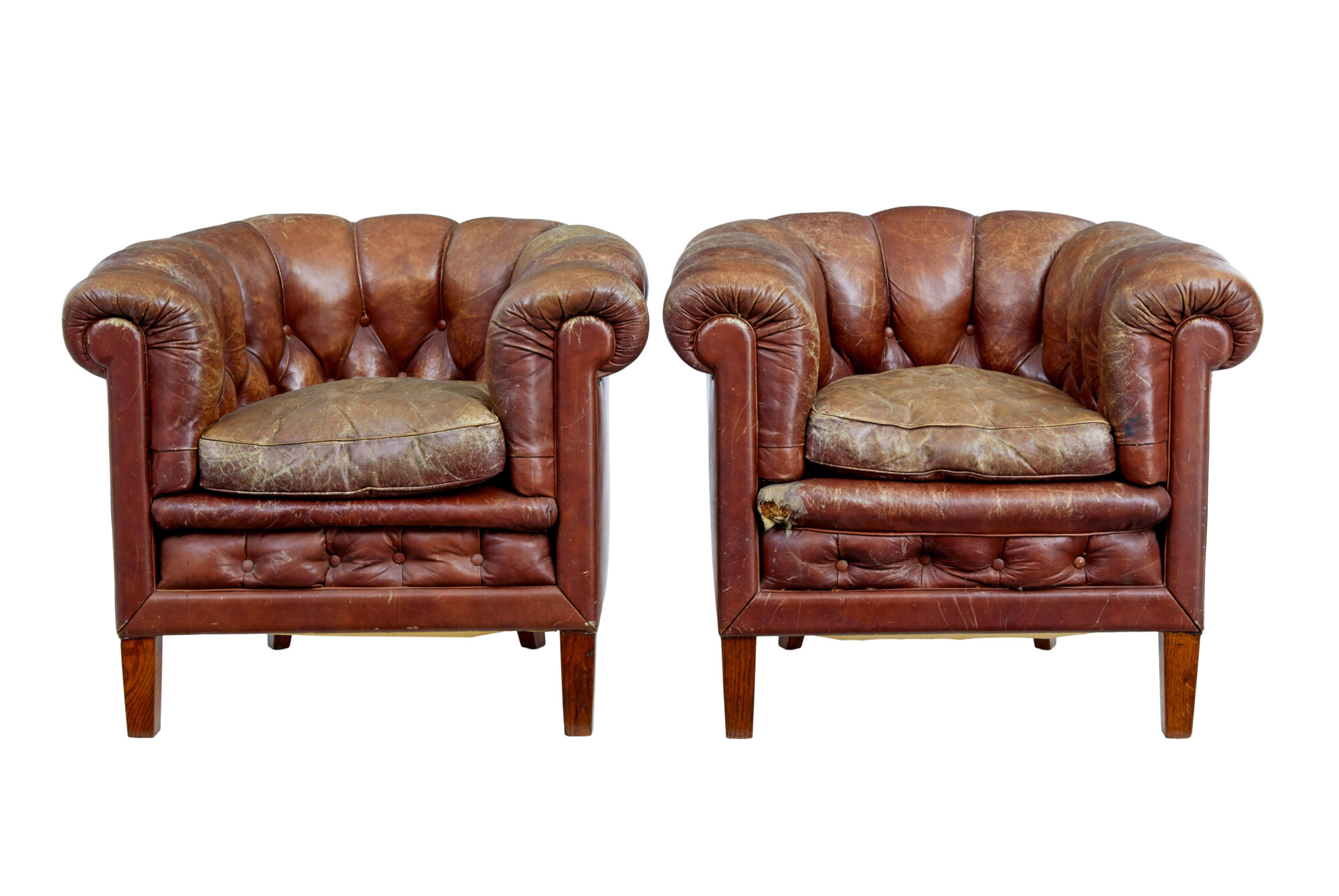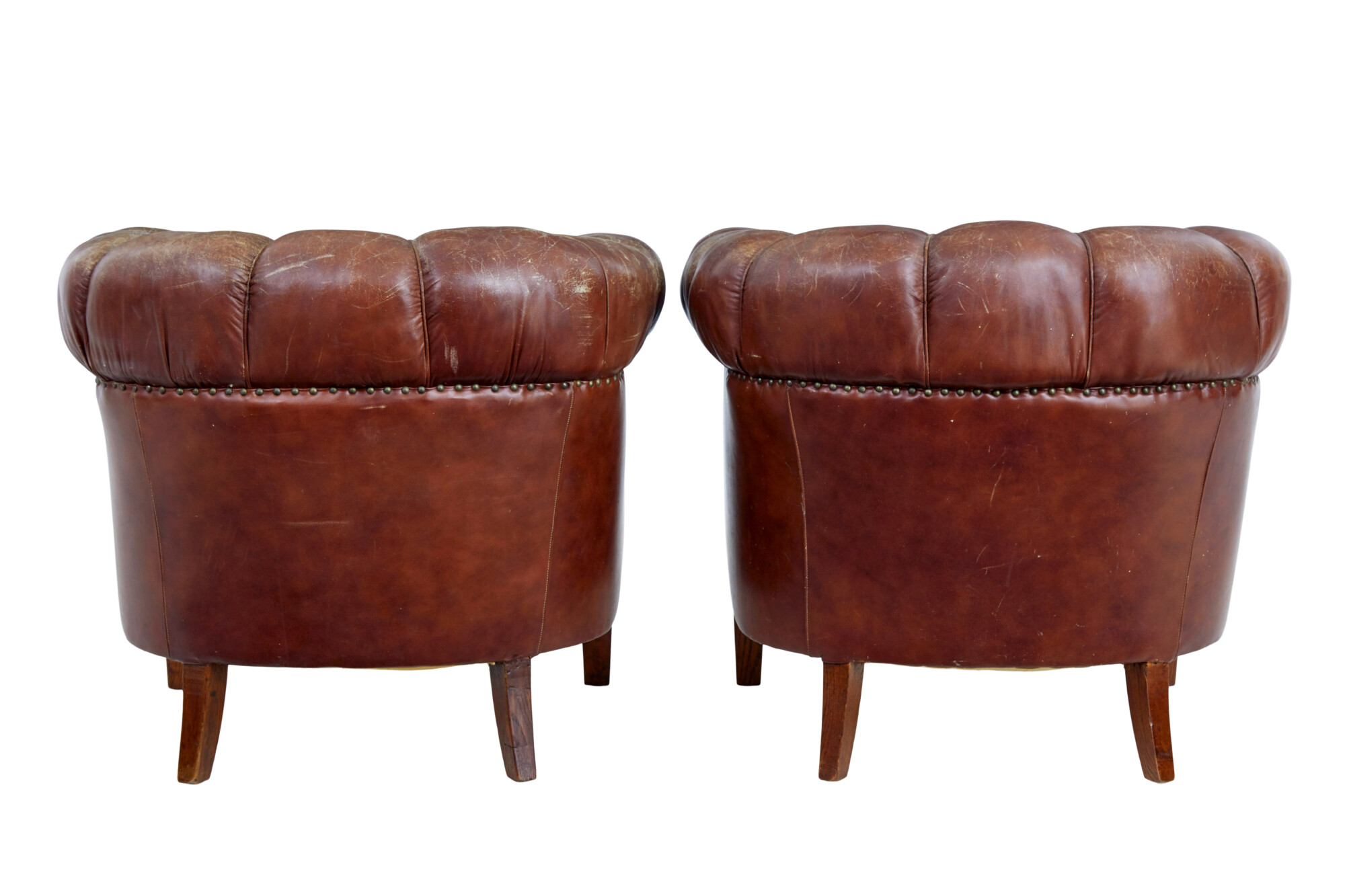 PAIR OF 20TH CENTURY LEATHER LOUNGE ARMCHAIRS CIRCA 1920.